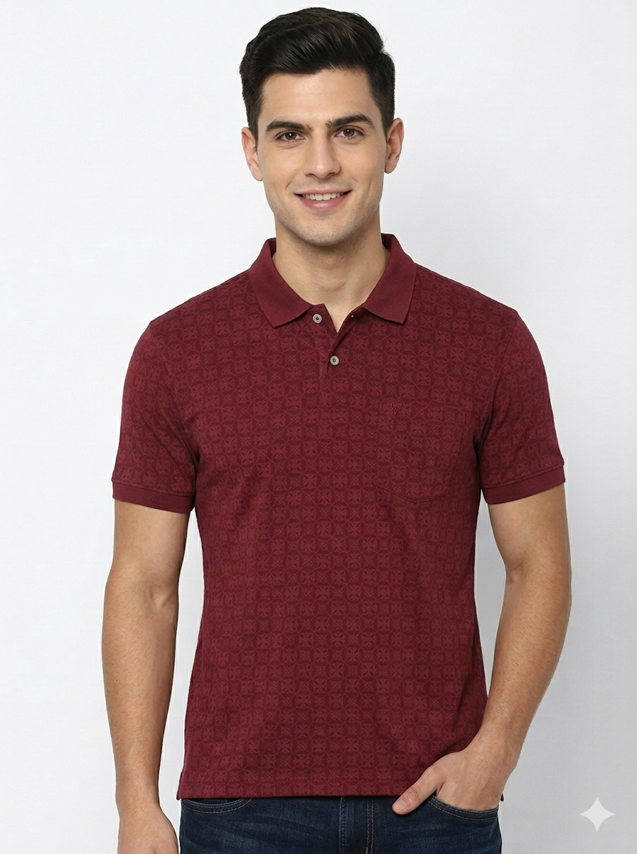 Men's Premium Patterned Allen Solly -Burgundy/Wine Red