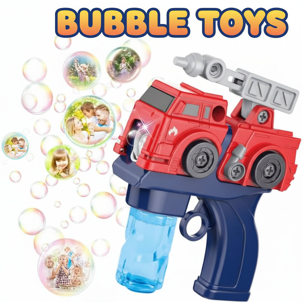 🦈 Misco Toys Kids Bubble Gun – DIY Bubble Machine for Kids (Shark Edition) | Build Your Own Bubble Maker Blower Toy – Fire Truck Design – Outdoor Fun for Ages 3-8