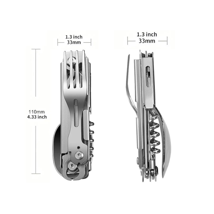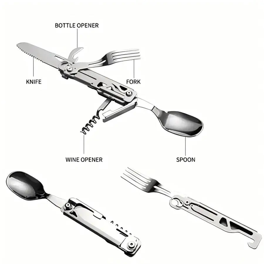 1 pc 6 in 1 Multifunctional Cutlery Set Outdoor Tableware Camping Portable Meal Knife Fork Spoon Bottle Outdoor Camping Cookware