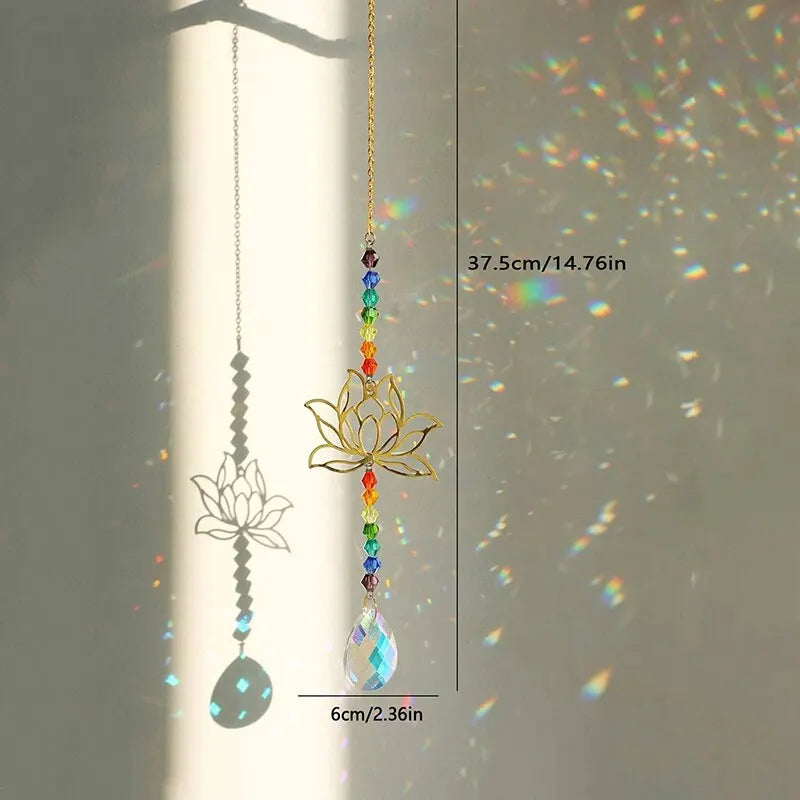 1Pc Lotus Crystal Wind Chime Charms Made Of Metal And GlassFor Home Light Gathering Decoration OutdoorGarden Sun Catchers Crafts