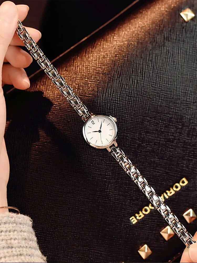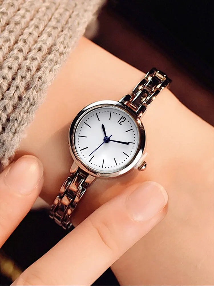 1PCs Fashion Versatile Women's Small and Cute Silver Steel Band Quartz Watch