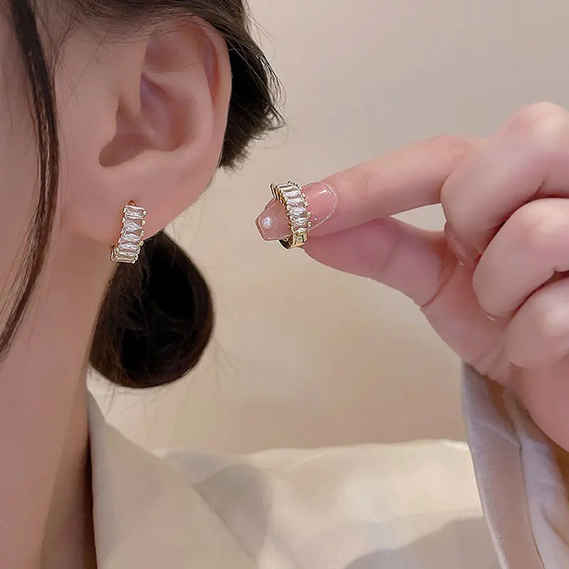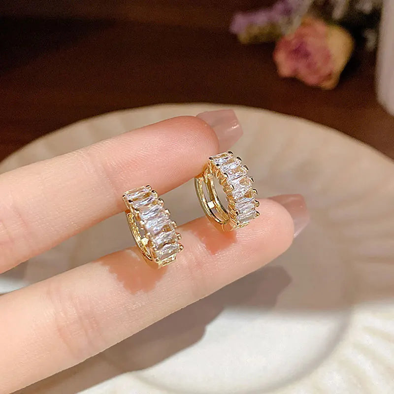2023 New Circle CZ Zircon Hoop Earrings For Women Gold Color Shiny Crystal Round Earring Fashion Girl Jewelry Gifts Wholesale