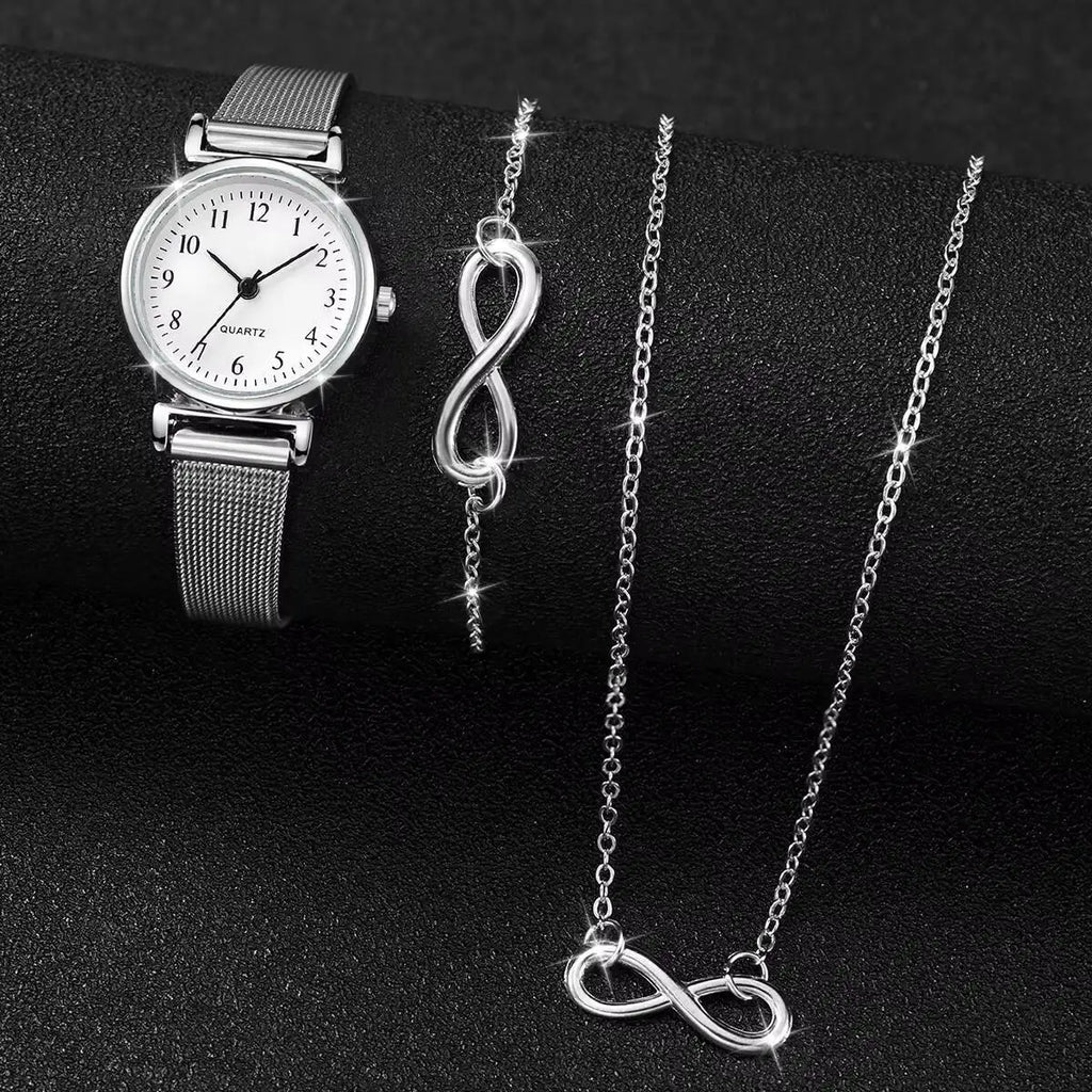 3PCS/Set Fashion Arabic Dial Women Quartz Watch Casual Mesh Strap Wristwatch Jewelry Set Reloj Mujer (Without Box)
