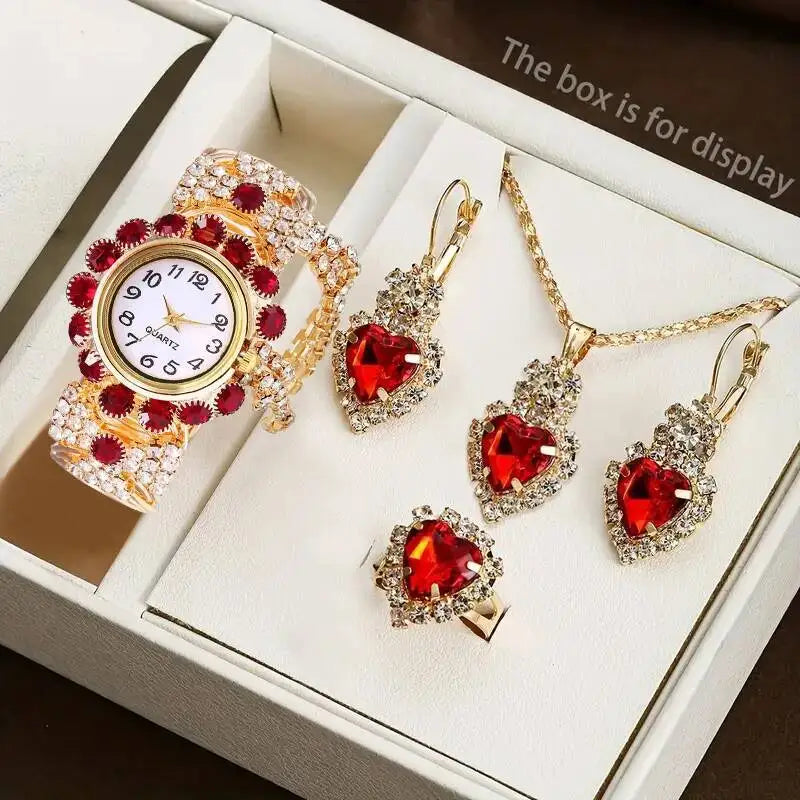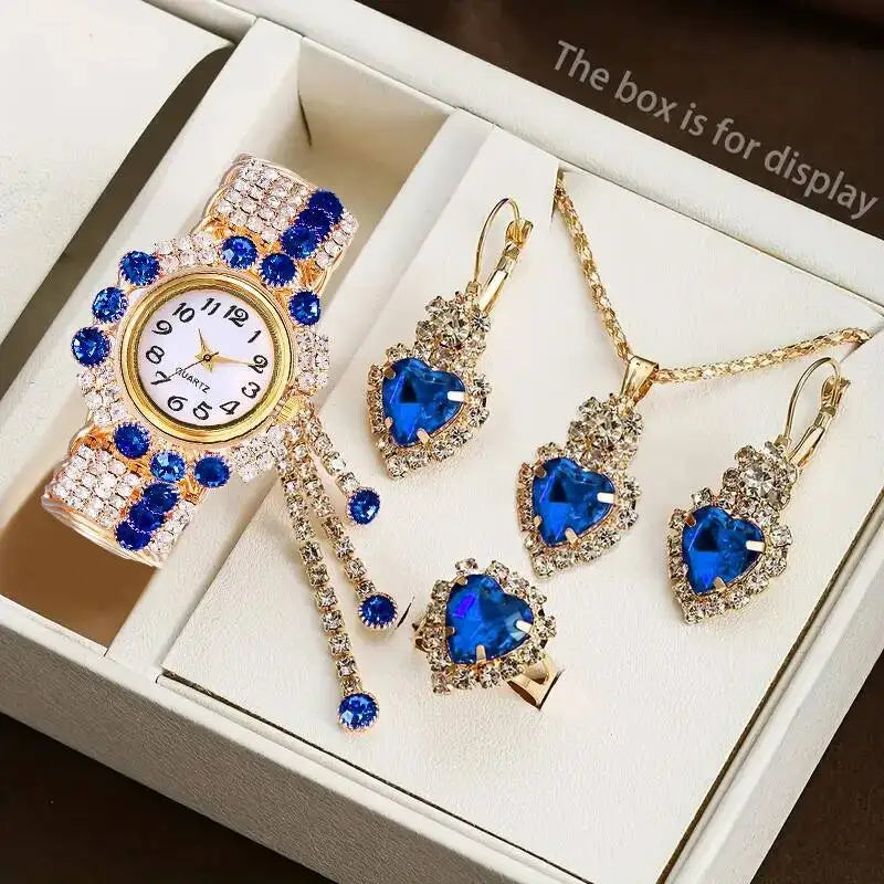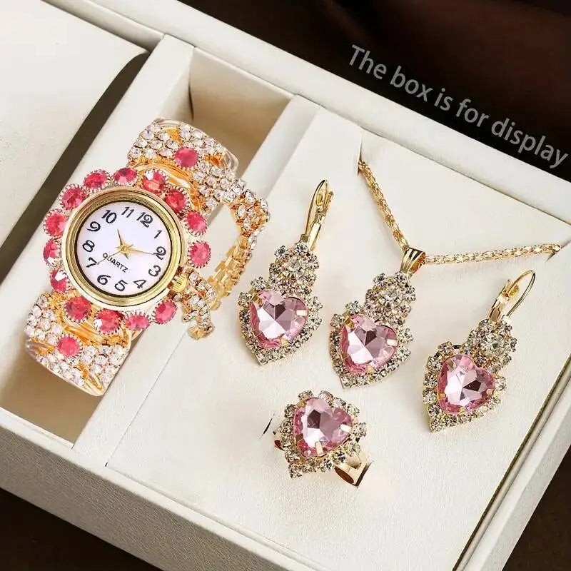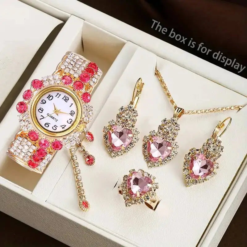 5PCS/Set Fashion Women Watches Luxury Rhinestone Adjustable Bangle Ladies Quartz Wristwatch Jewelry Set Reloj Mujer(Without Box)