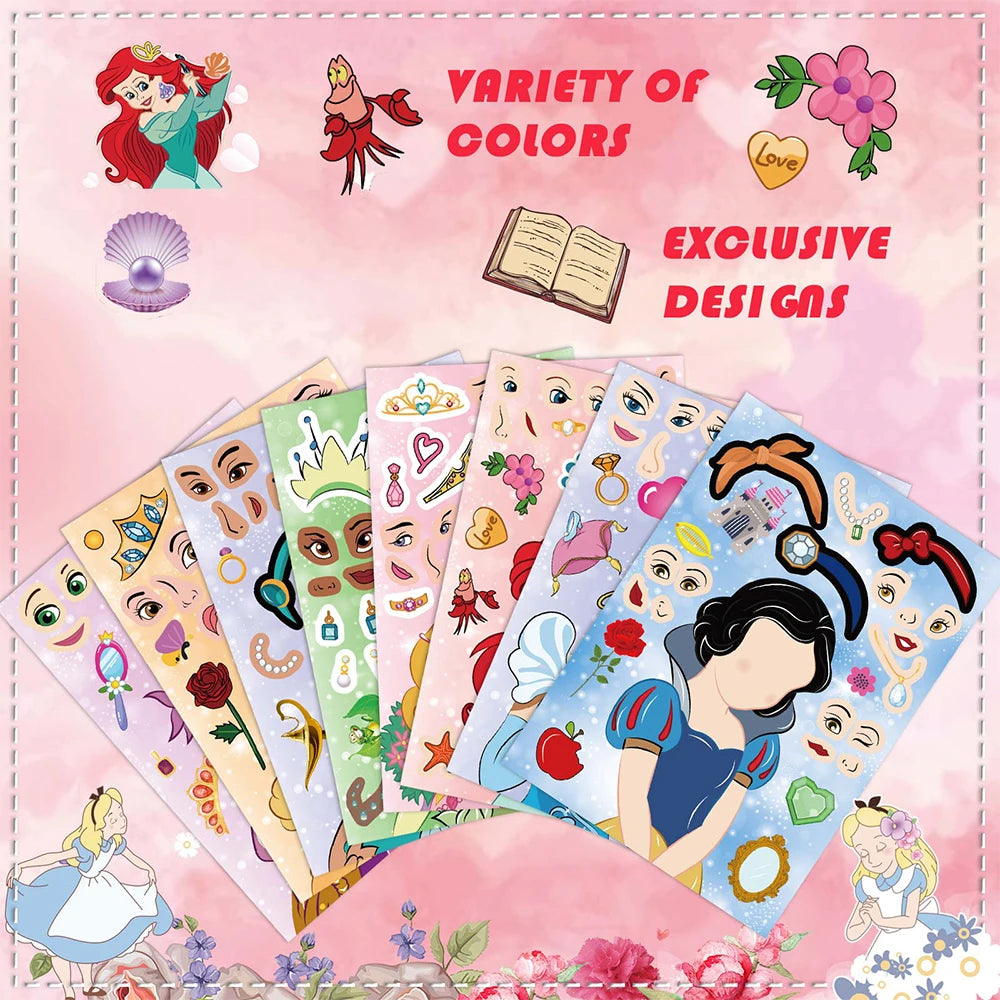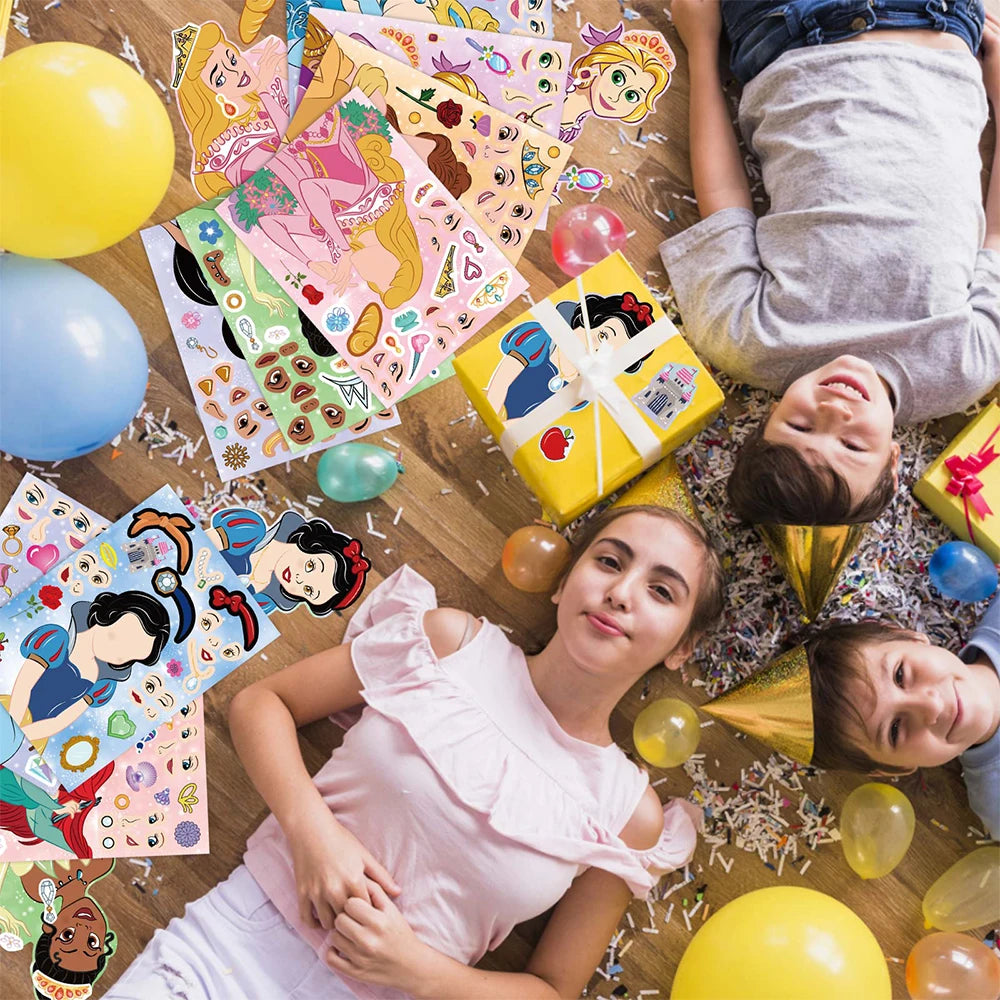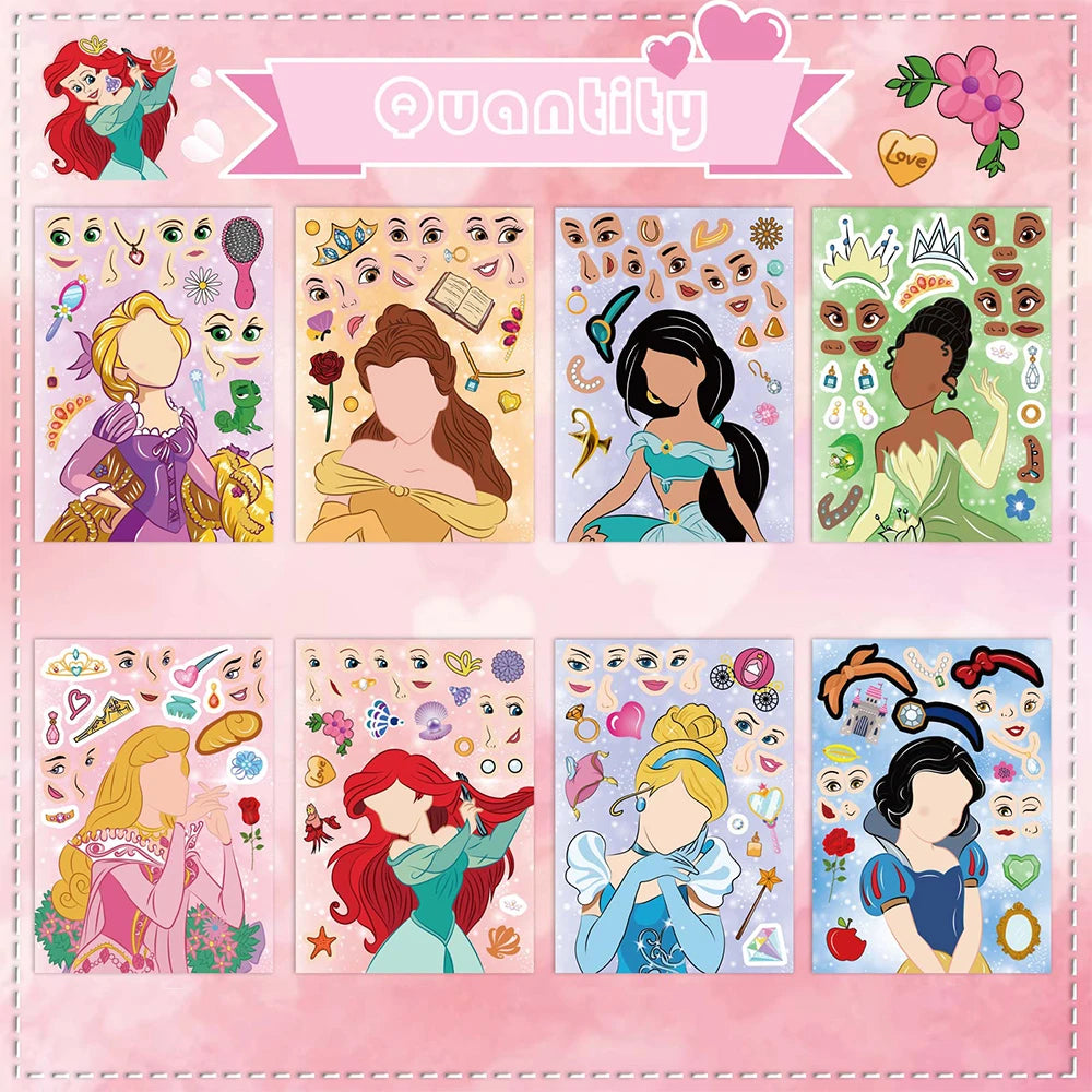 8Sheets Disney Princess Children Puzzle Stickers Make-a-Face Funny DIY Assemble Jigsaw Cartoon Sticker Kids Educational Toys