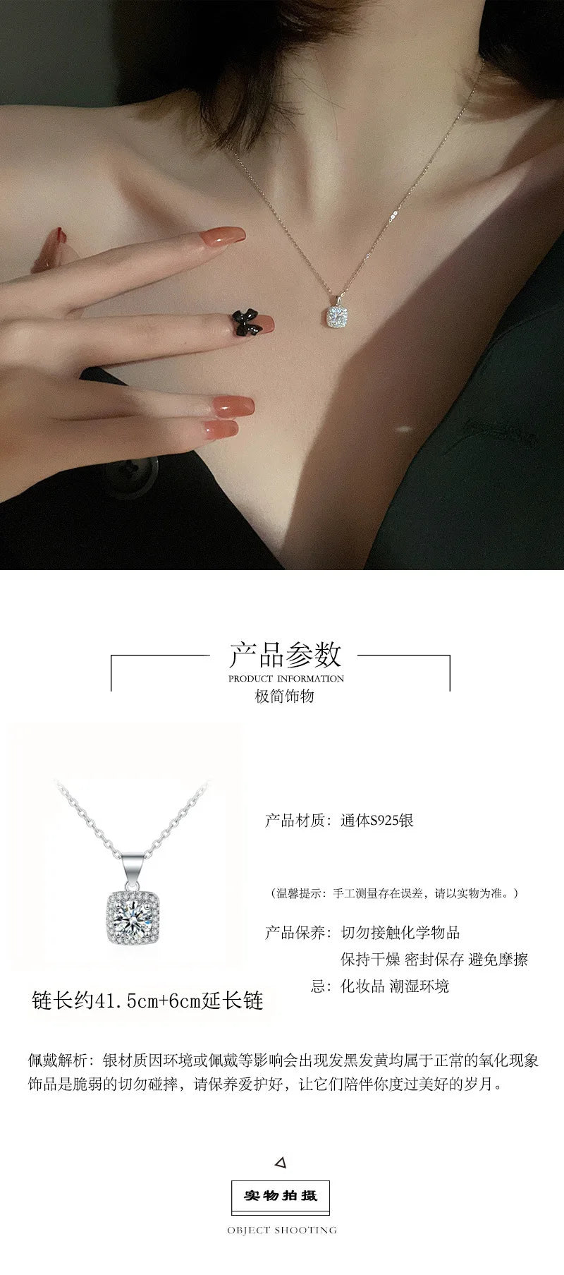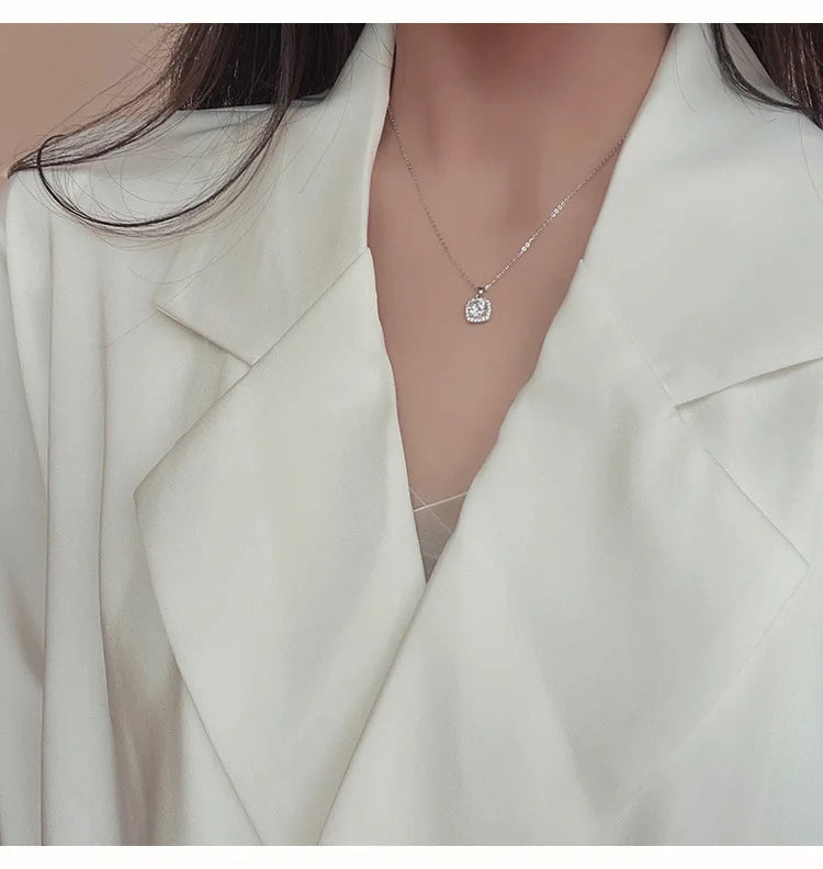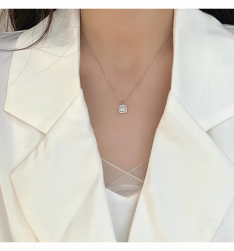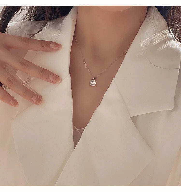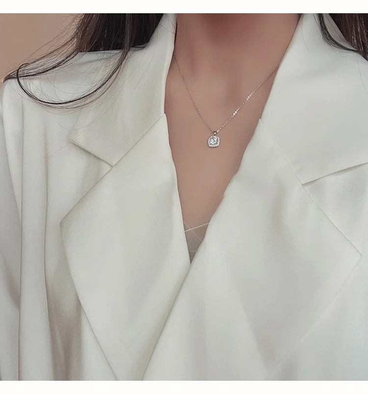 925 Sterling Silver Neck Chain Square Zircon Pendants Necklaces Women Luxury Jewelry Exquisite Elegant Charms Accessories