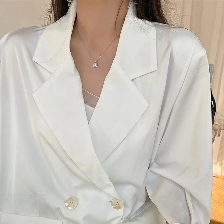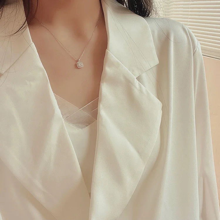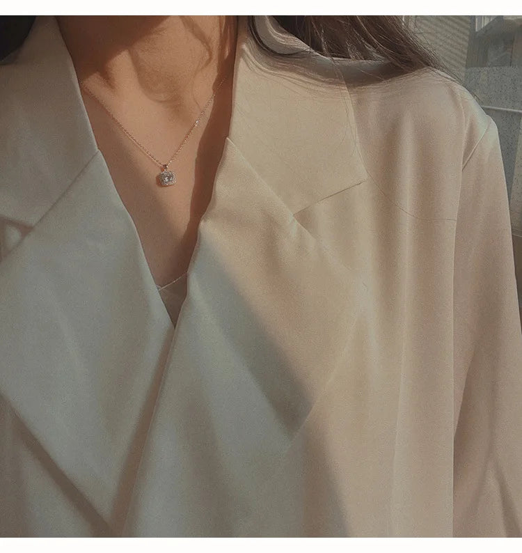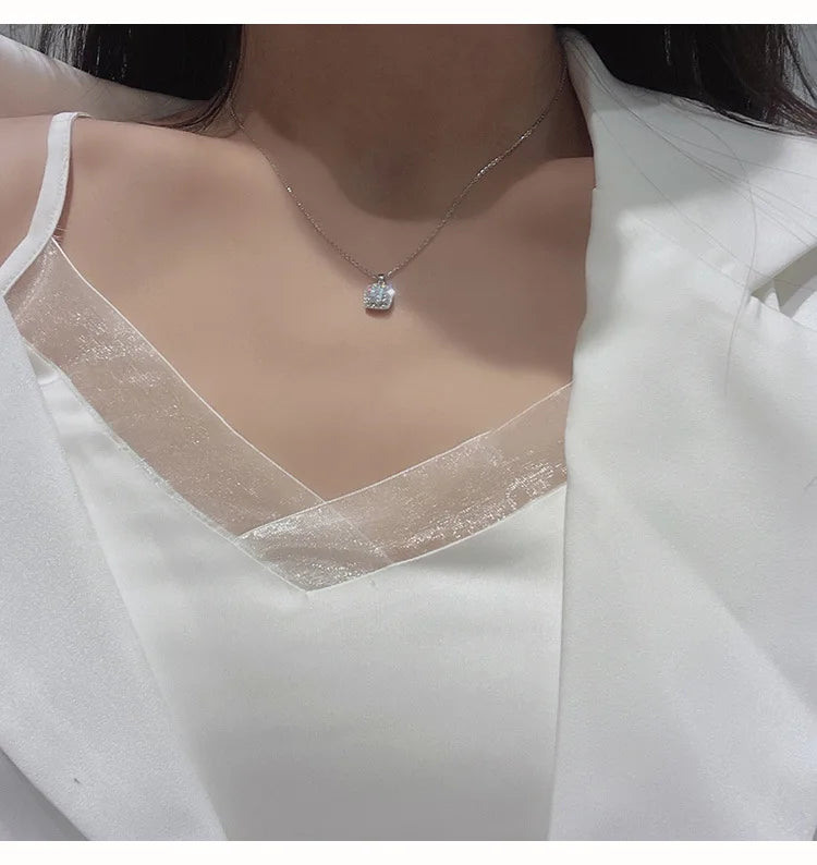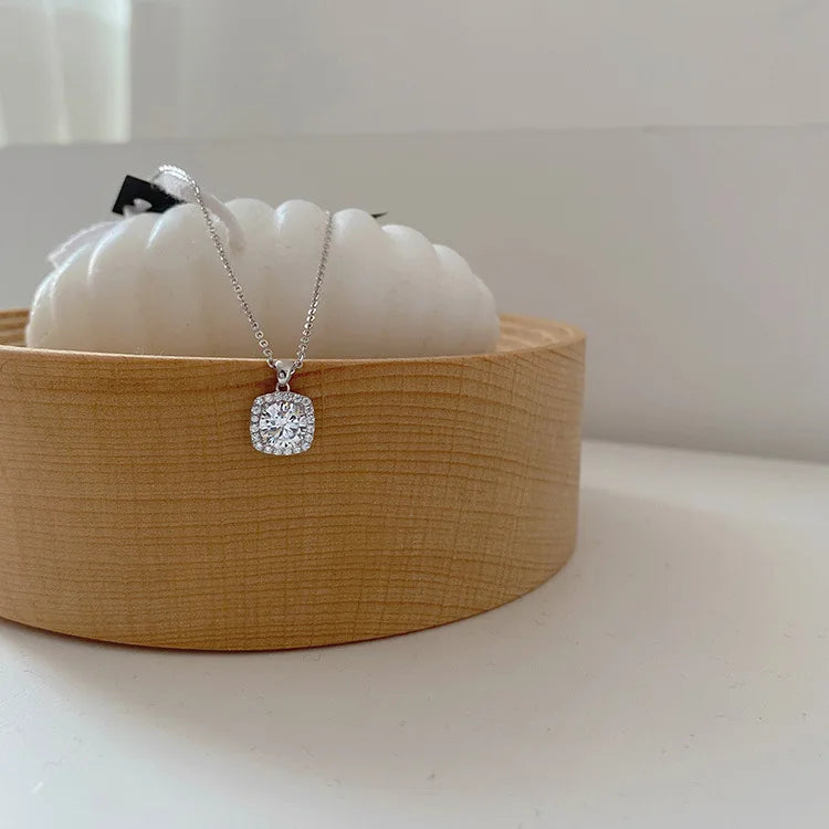 925 Sterling Silver Neck Chain Square Zircon Pendants Necklaces Women Luxury Jewelry Exquisite Elegant Charms Accessories