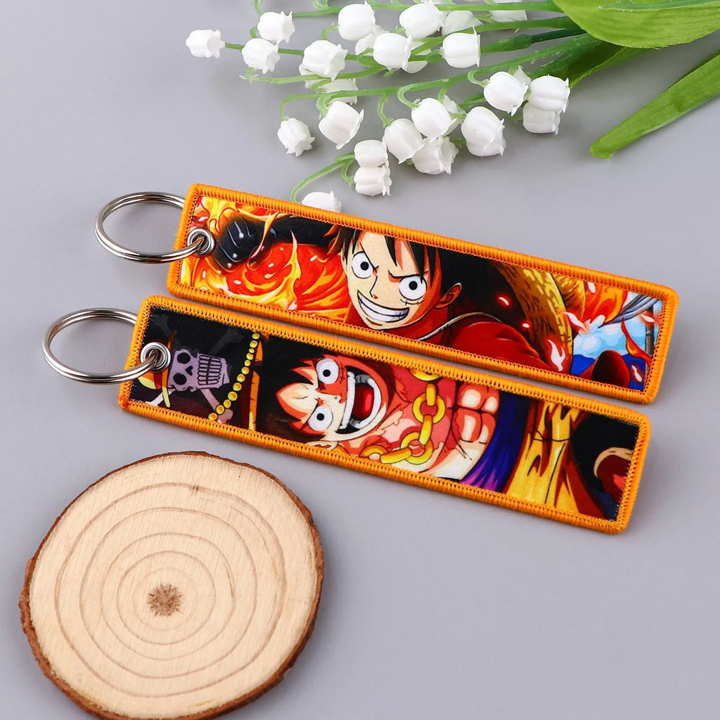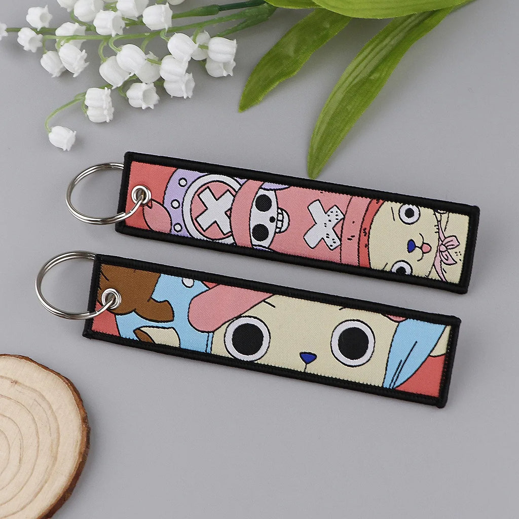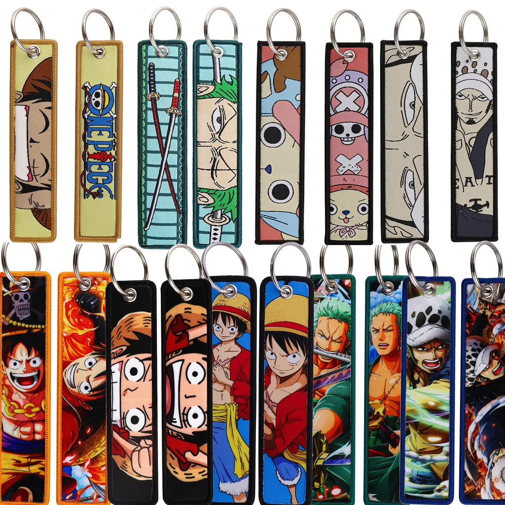 Anime One Piece Label Keychain Luffy Zoro Action Figures Fabric Woven Label Key Ring Accessories for Car Bag Key Chain Toys Gift