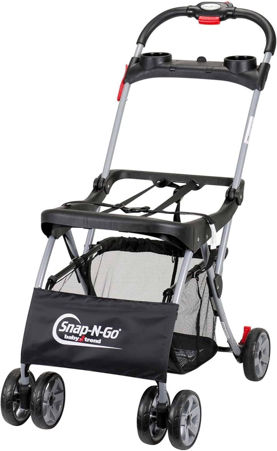 Baby Trend Snap N Go EX Polyester Lightweight Foldable Universal Single Infant Car Seat Carrier with 2 Cup Holder and Covered Compartment, Black
