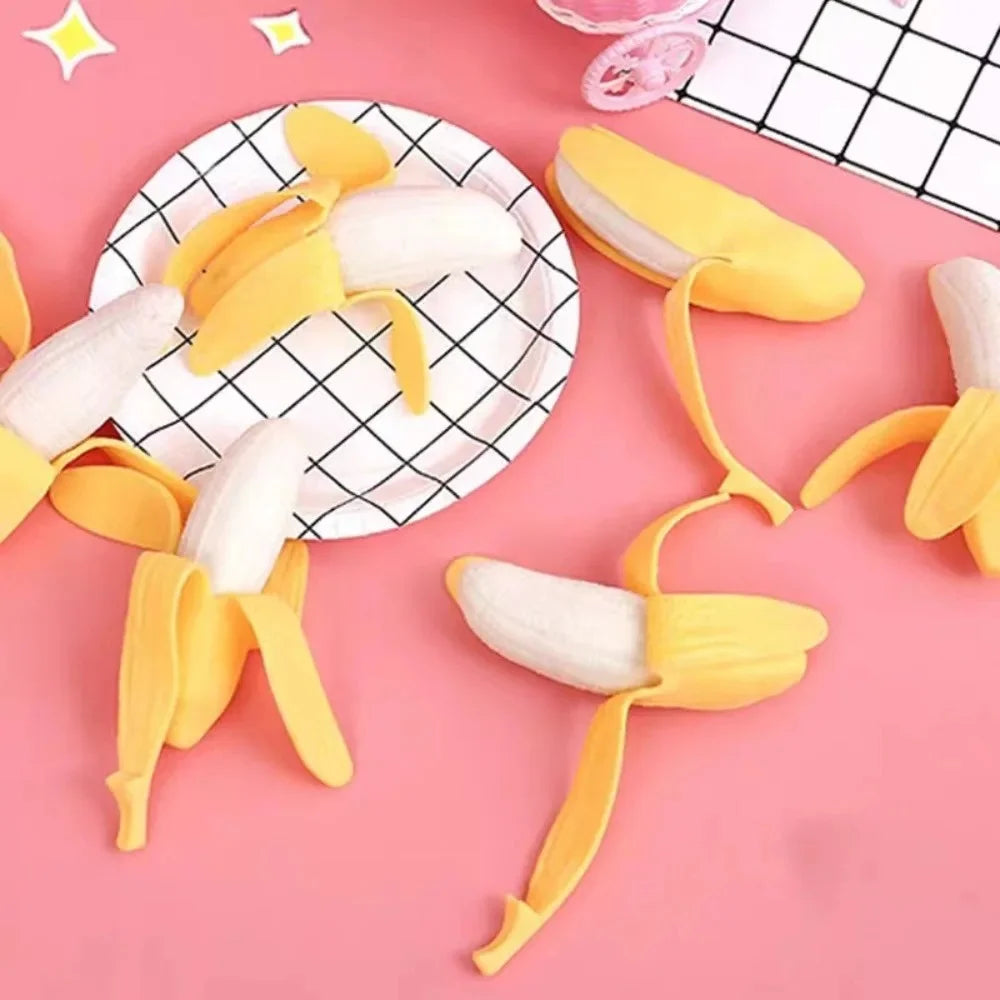 Banana Toy Stretchy Fidget Toy Novelty Stress Relief Toys Funny Peeled Fake Banana Fruit Stress Toy Birthday Party Favors
