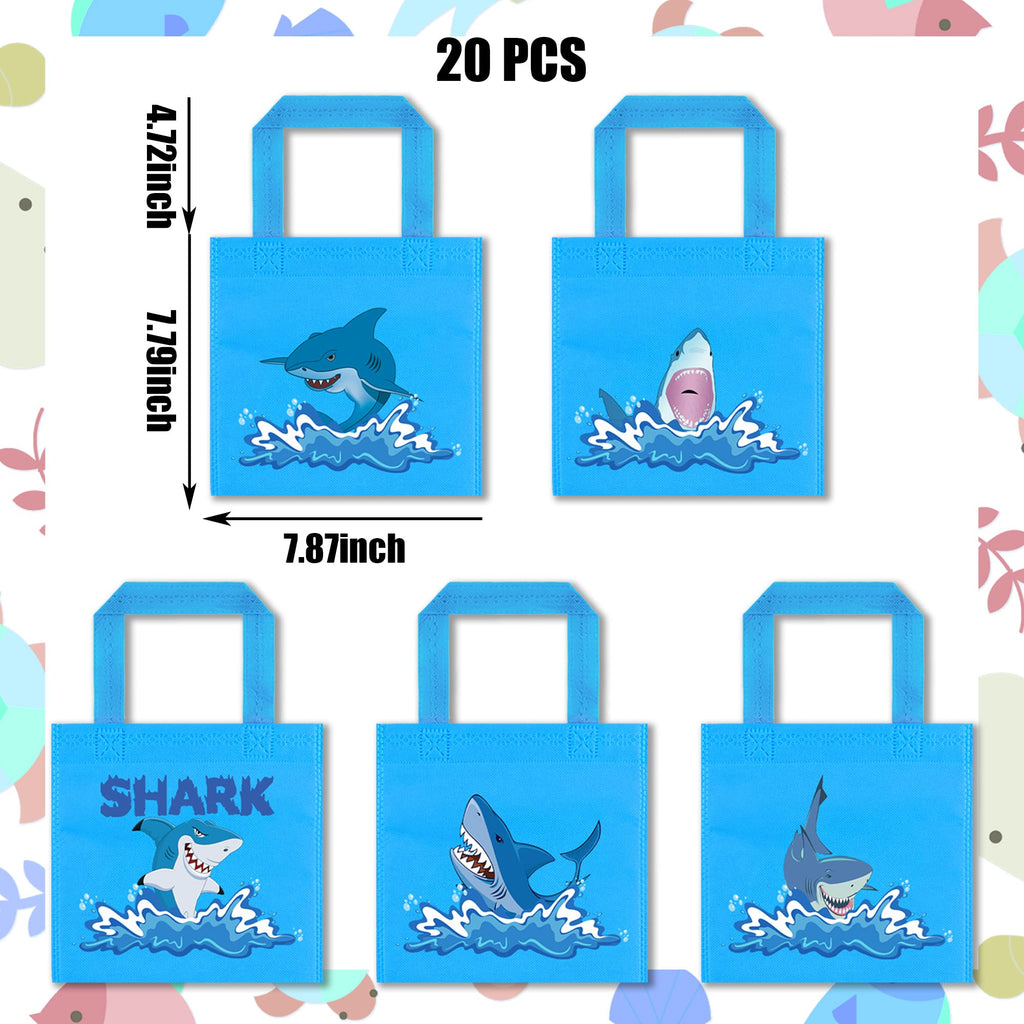 - تشمل العبوة: ستحصل على ٢٠ كيس هدايا غير منسوج بنقوش أسماك قرش. تحتوي على ٥ أنواع من أسماك القرش بنقوش مختلفة. هذه النقوش مطبوعة بوضوح، وهي كثيرة بما يكفي لاستخدامها في الحفلة.