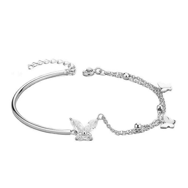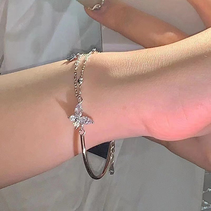 Butterfly Shiny Zircon Silver Color Bangle Light Luxury Multi-layer Chain Bracelet For Women Fashion Hand Accessories Jewelry
