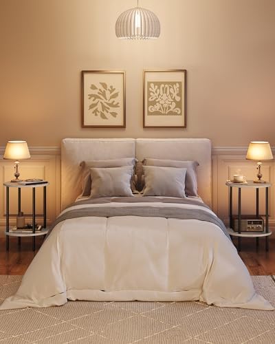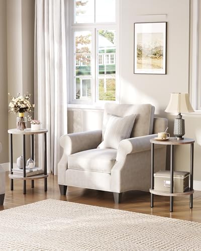 CHOEZON Round Side Table, 2-Tier End Table, Small Round Nightstand with Sturdy Metal Tube, Industrial Coffee Table Round, for Living Room, Bedroom, Greige and Black TBZ01BG