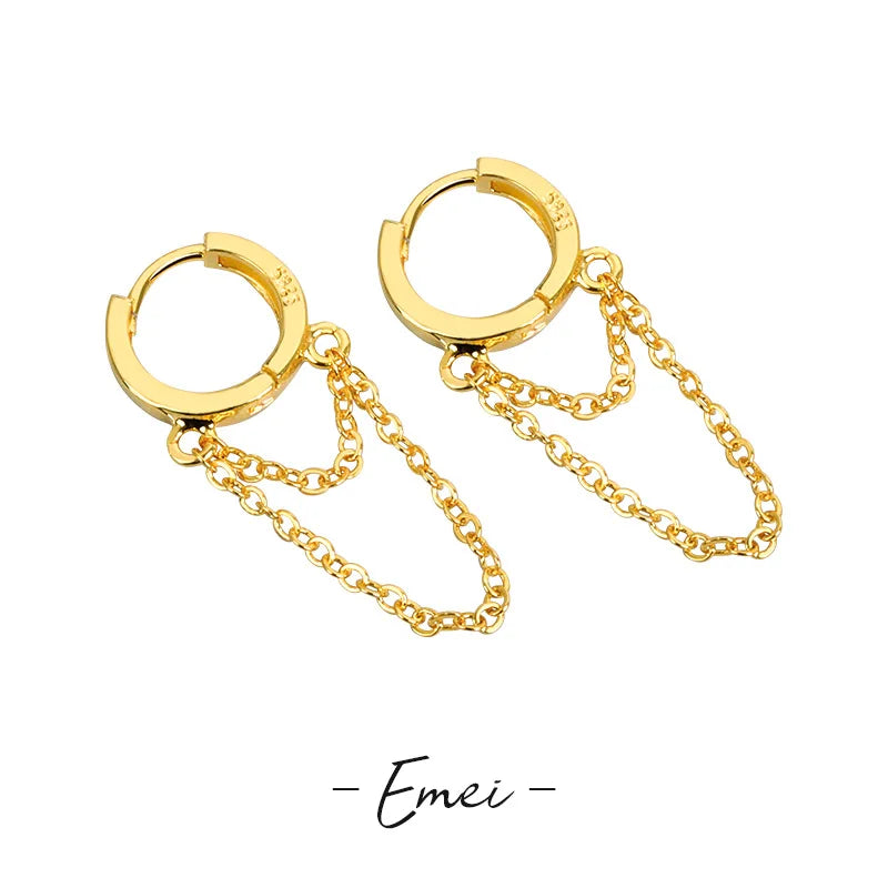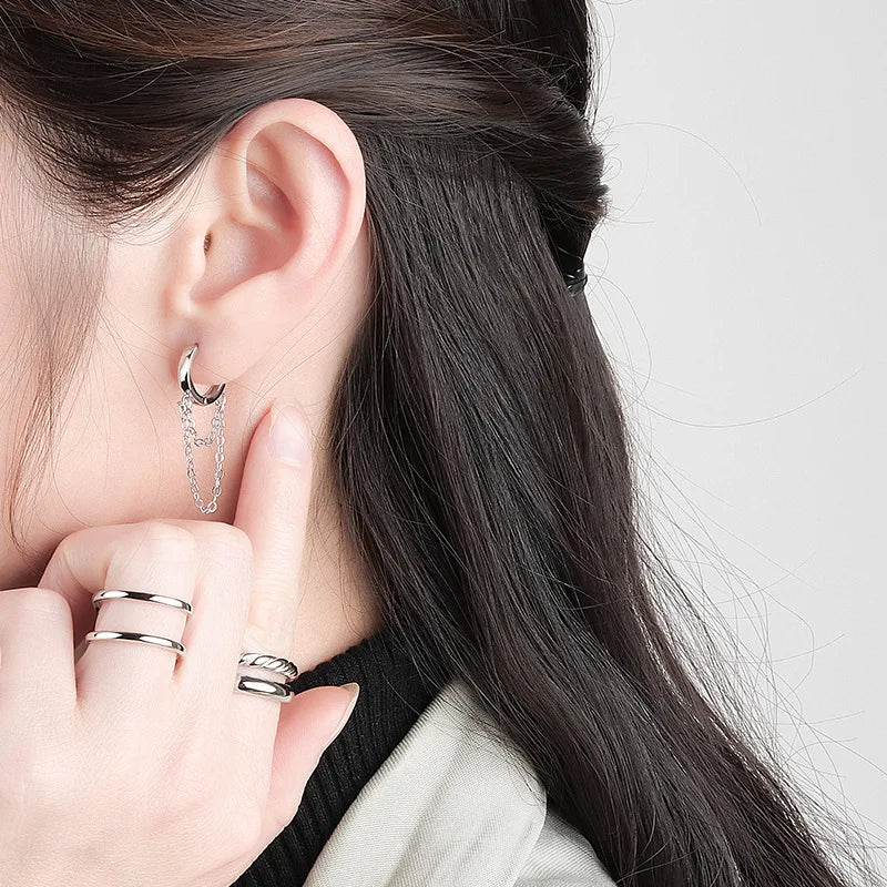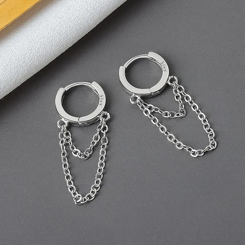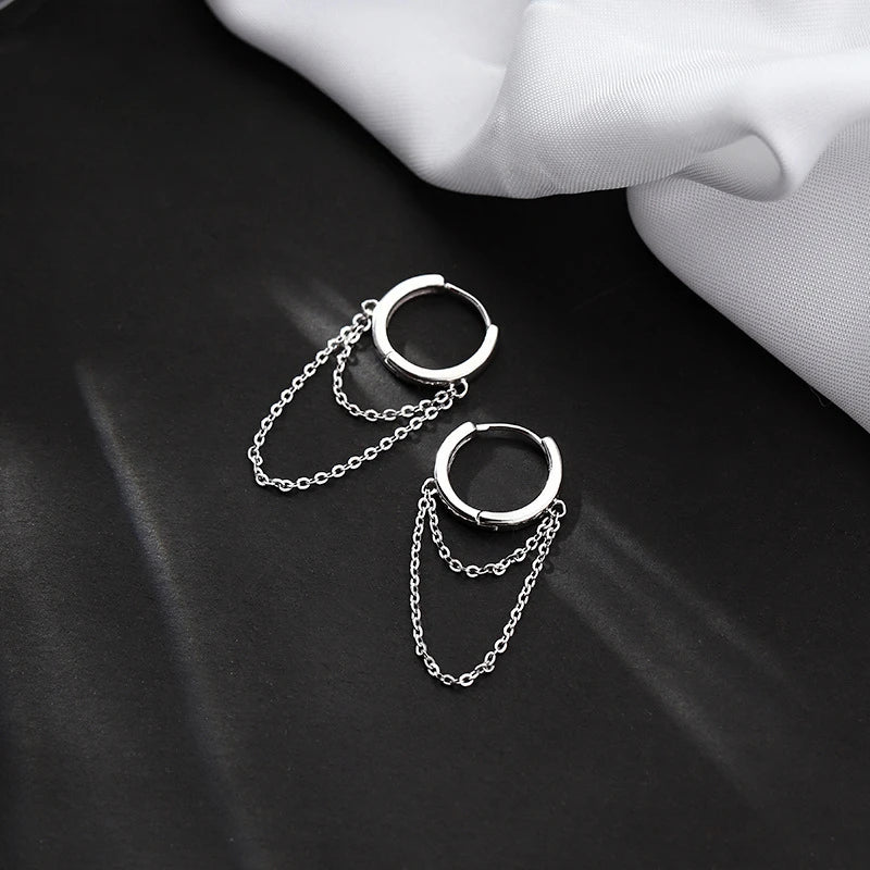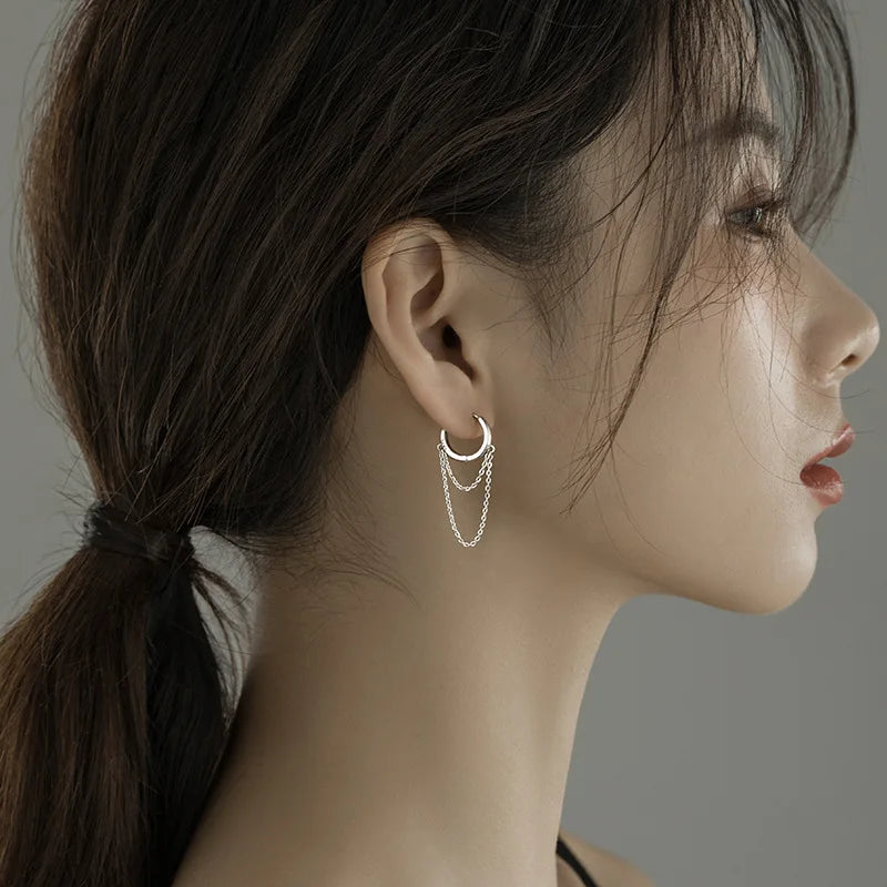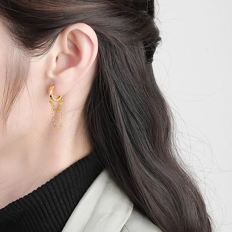 Creative Gold Color Double Layer Stainless Steel Chain Hoop Earring for Women Charm Long Tassel Drop Dangle Earring Jewelry Gift