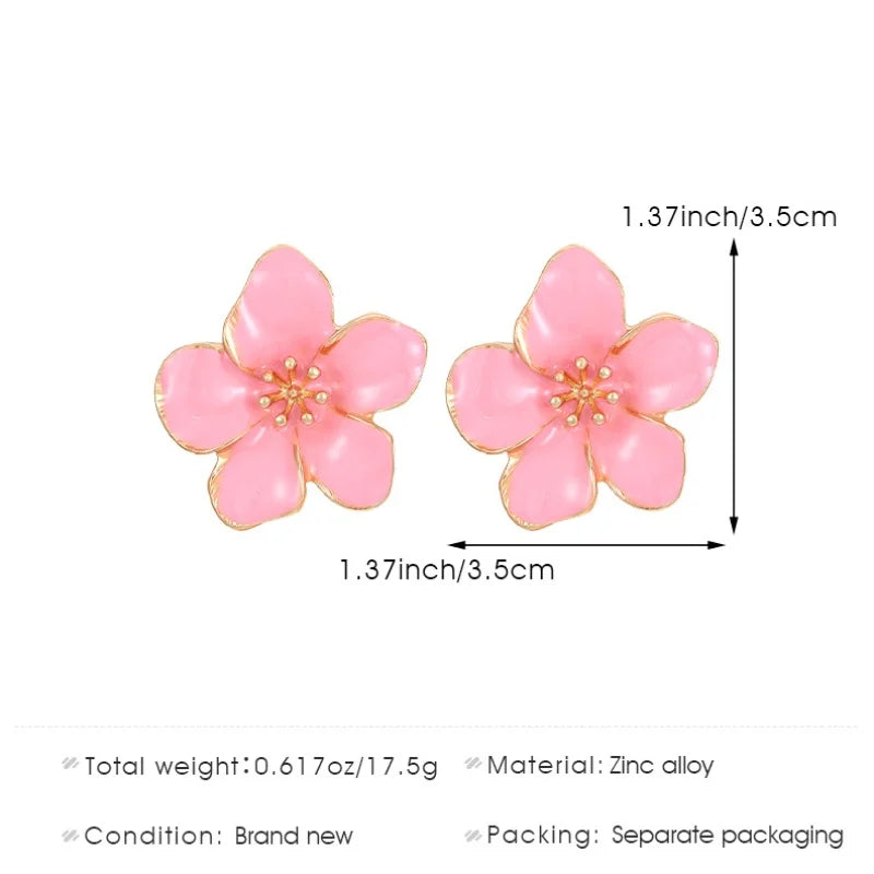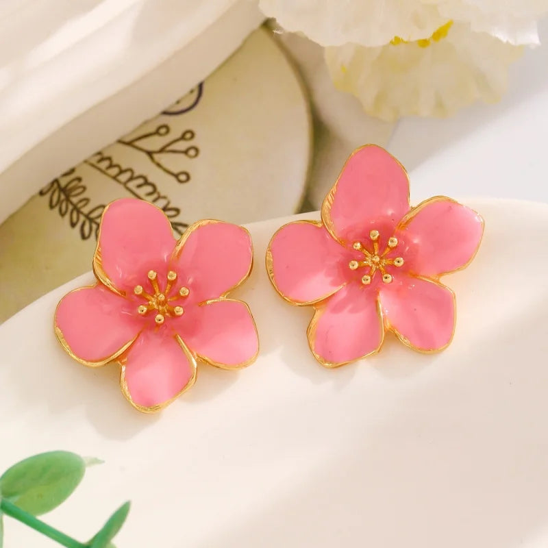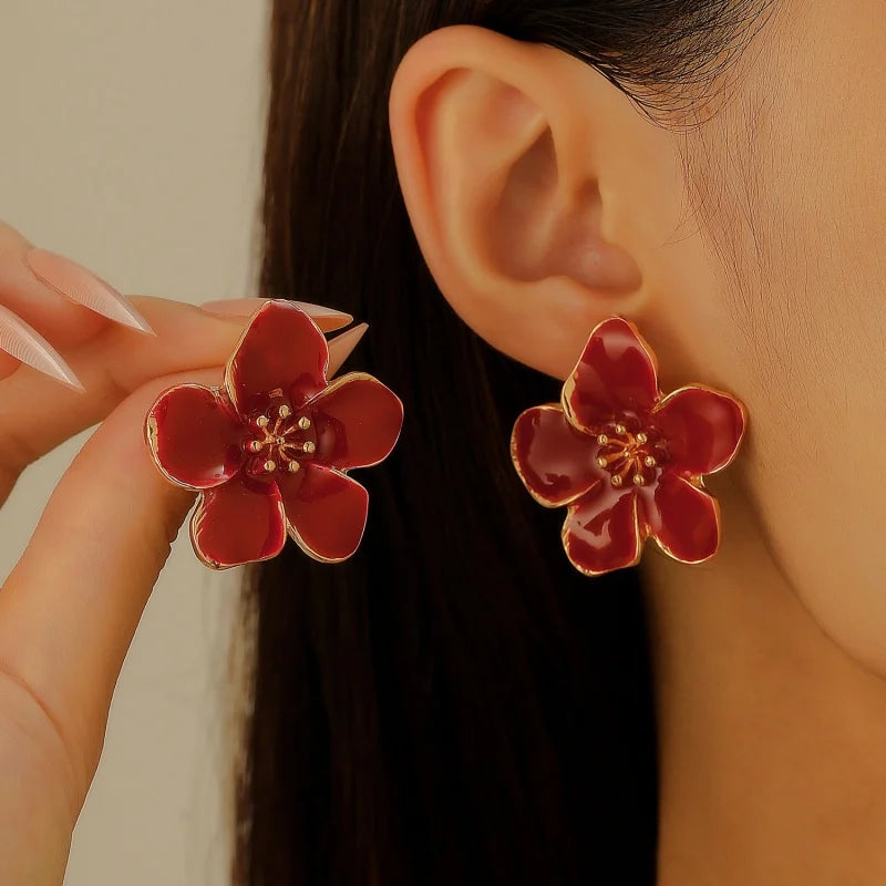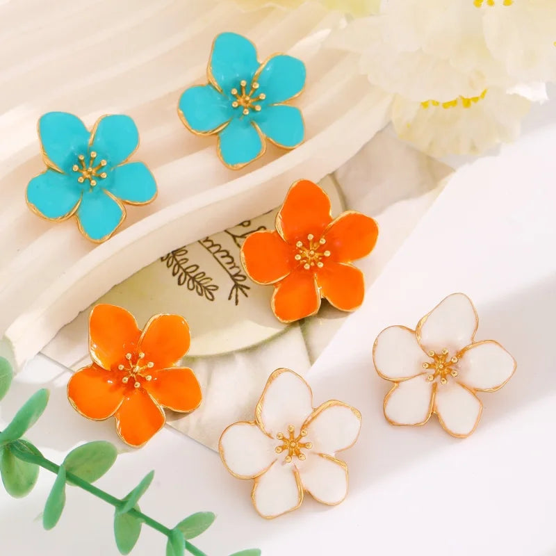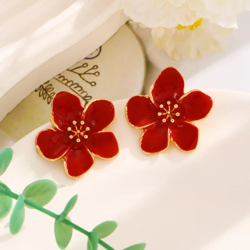 Enamel Flower Stud Earrings for Women Korean Fashion Delicate Daliy Life Couple Jewelry Gifts Red White Pink Color