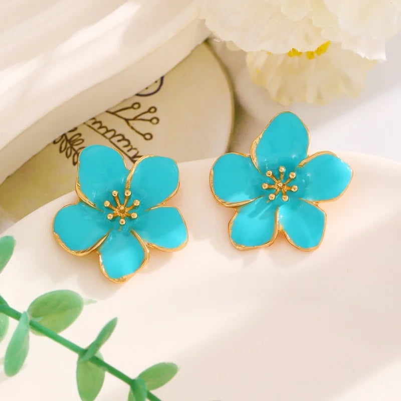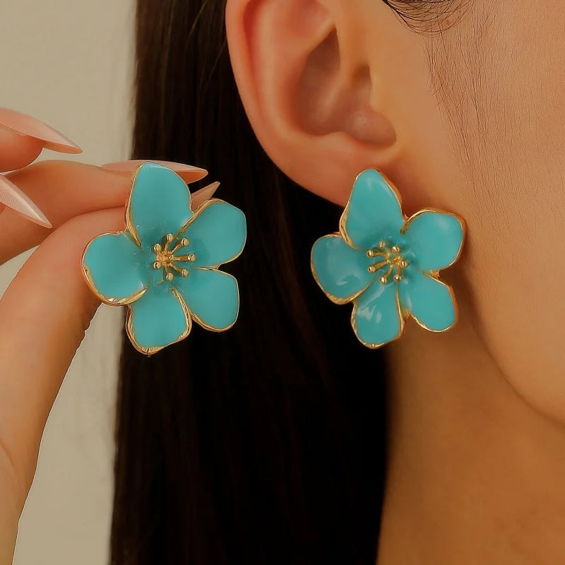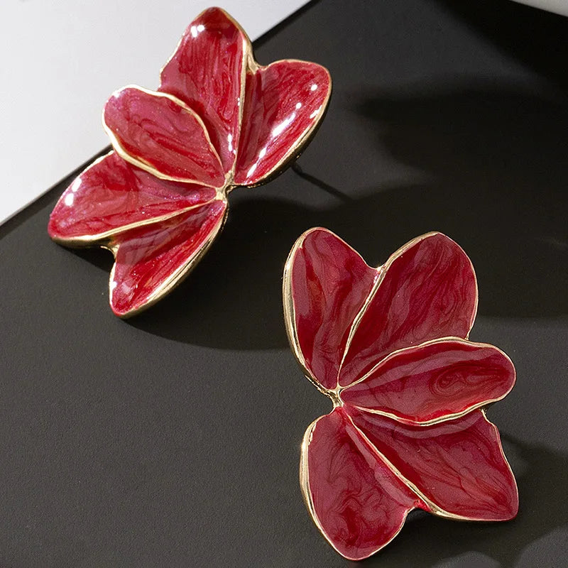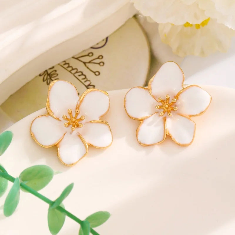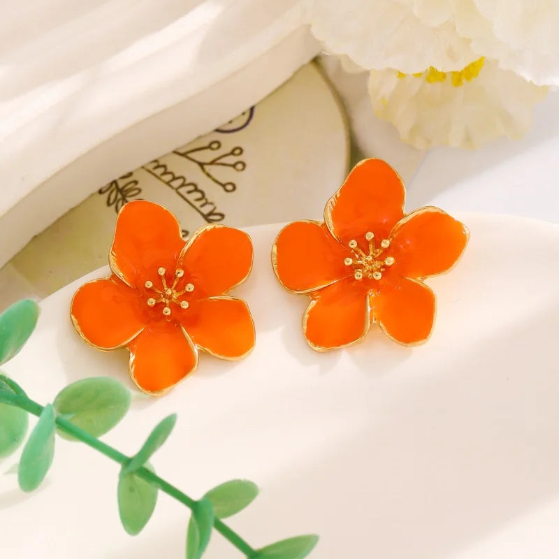 Enamel Flower Stud Earrings for Women Korean Fashion Delicate Daliy Life Couple Jewelry Gifts Red White Pink Color