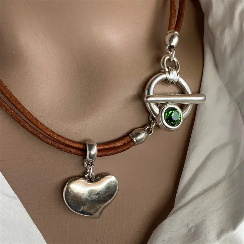 Ethnic Style Retro Round Pendant Necklace for Women Bohemian Style Beaded Leather Rope Party Birthday Gift Accessories