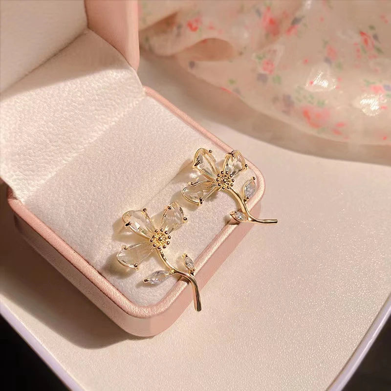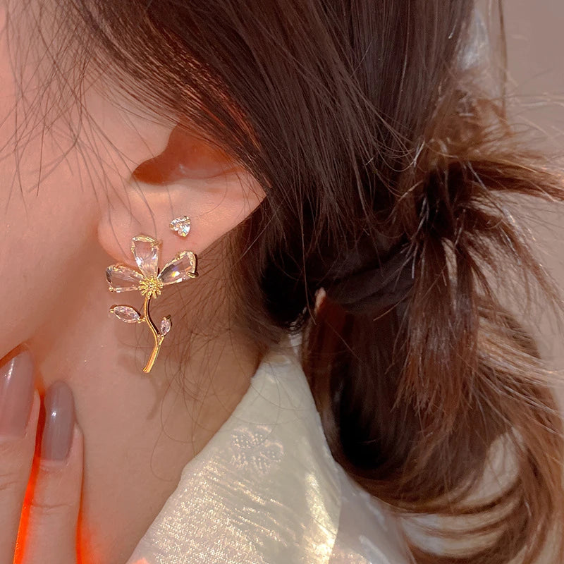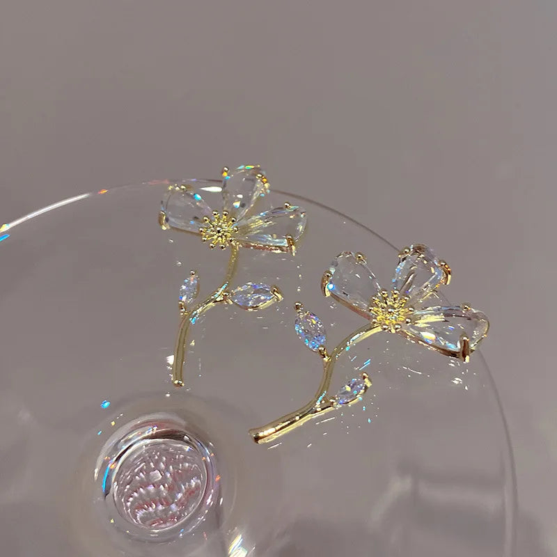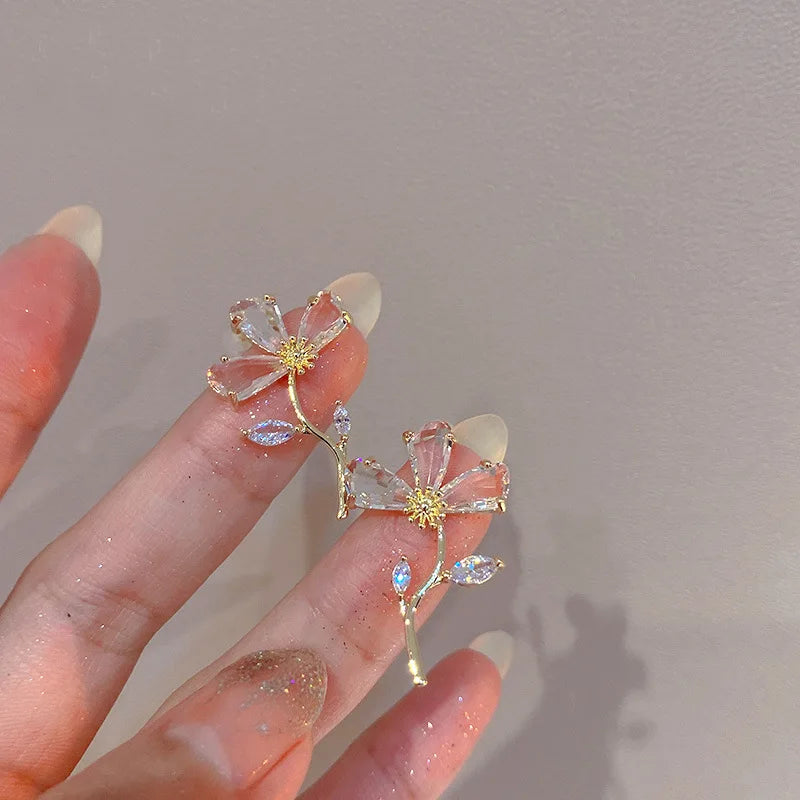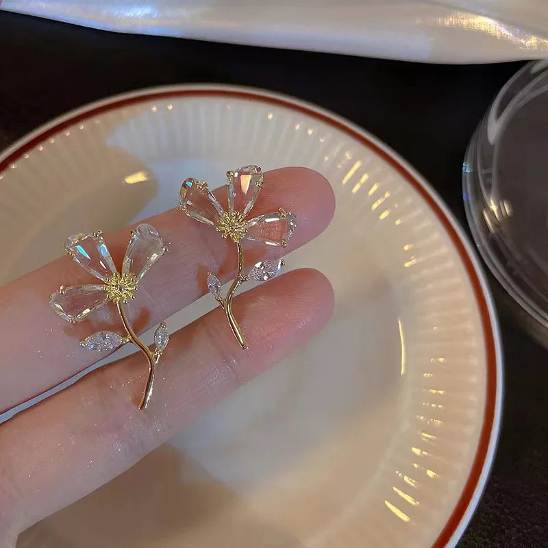 Fashion Elegant Crystal Flower Zircon Drop Earrings Women's Wedding Jewelry Party Gift Wholesale