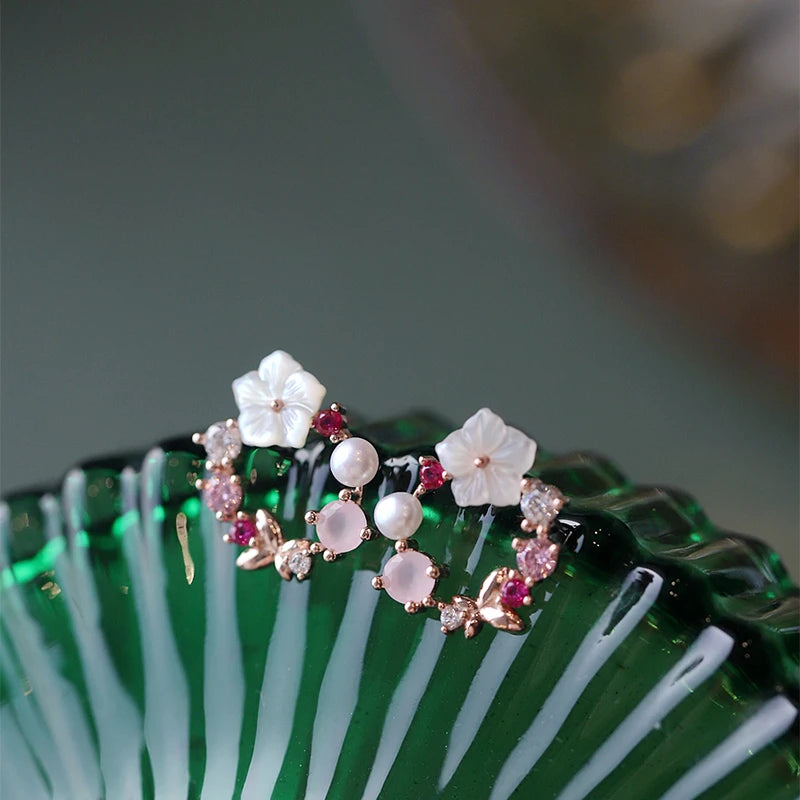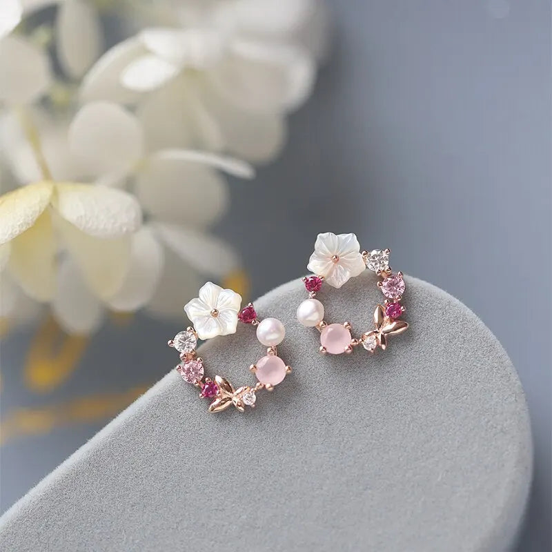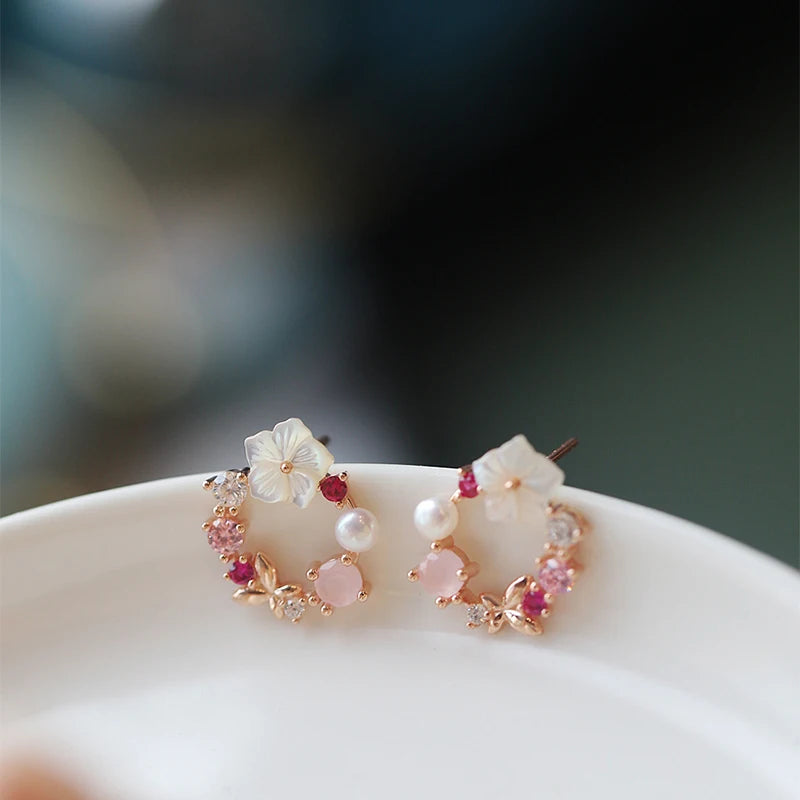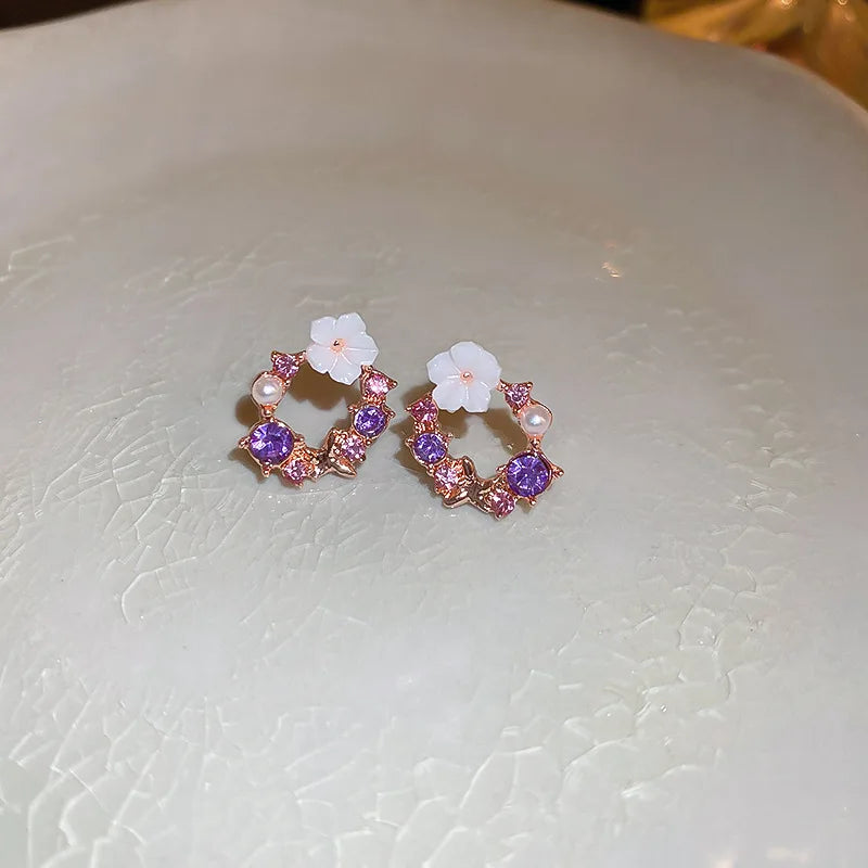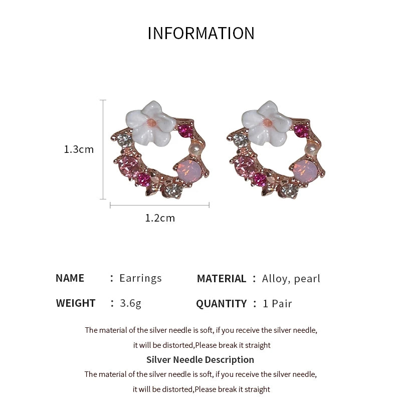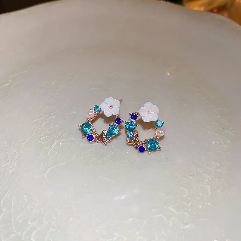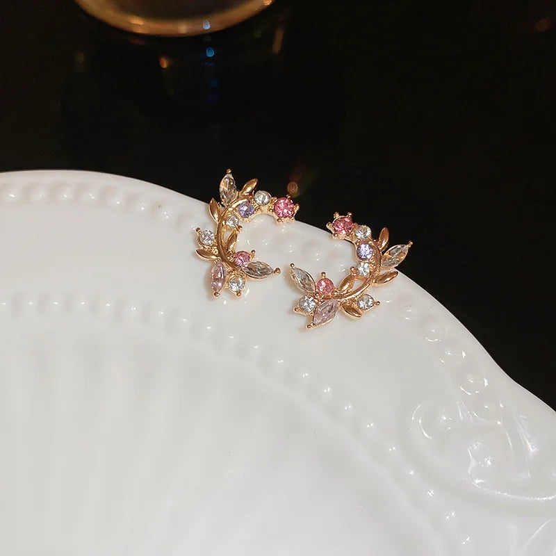 Flower Leaves Stud Earrings For Women Girls Korean Fashion Rhinestone Crystal Stud Earrings For Party Banquet Jewelry Gift