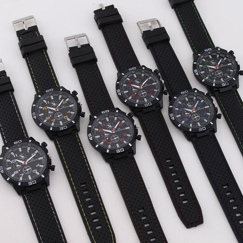 Foreign trade sports three eye silicone strap men's watch men's watch men's watch quartz