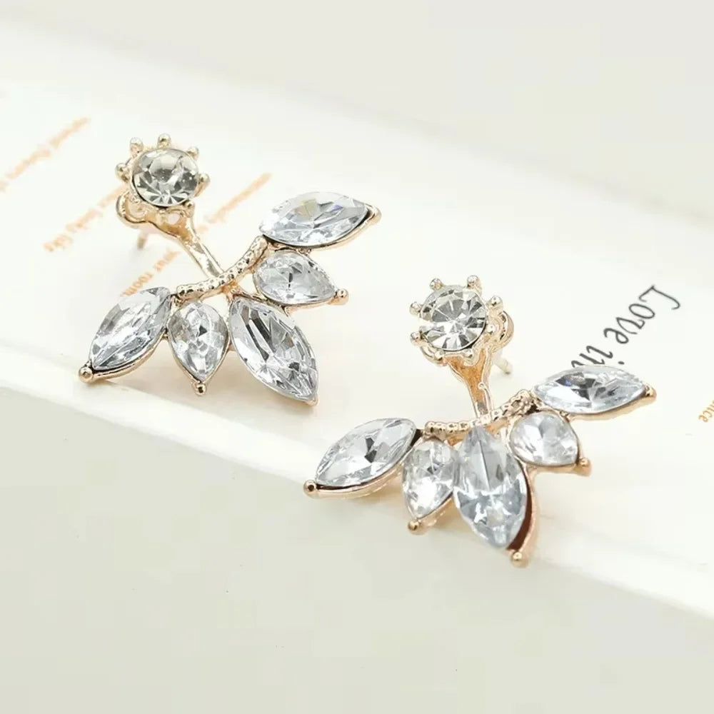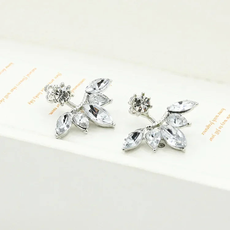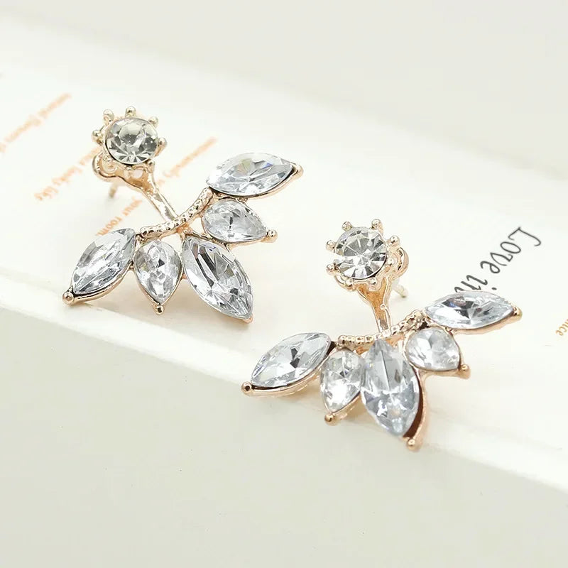 FSUNION New Zircon Crystal Ear Cuff Clip Leaf Stud Earrings For Women Piercing Fine Jewelry Brincos Gift 2025