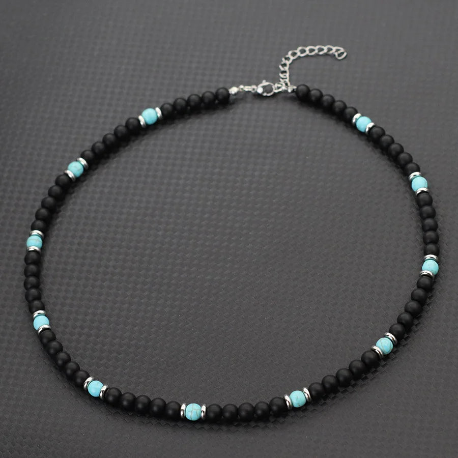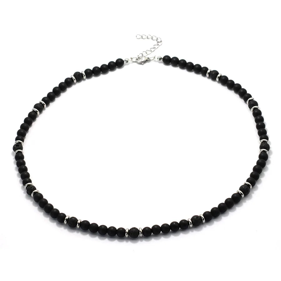 Healing Men Choker Necklace 19 Inches Stainless Steel Buckle 6mm Natural Howlite Tiger Eyes Lava Beads Short Collar Gift For Him