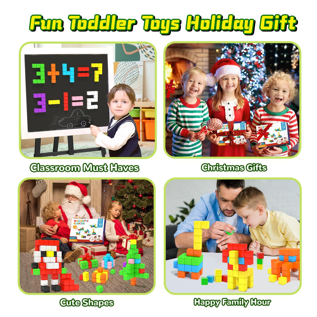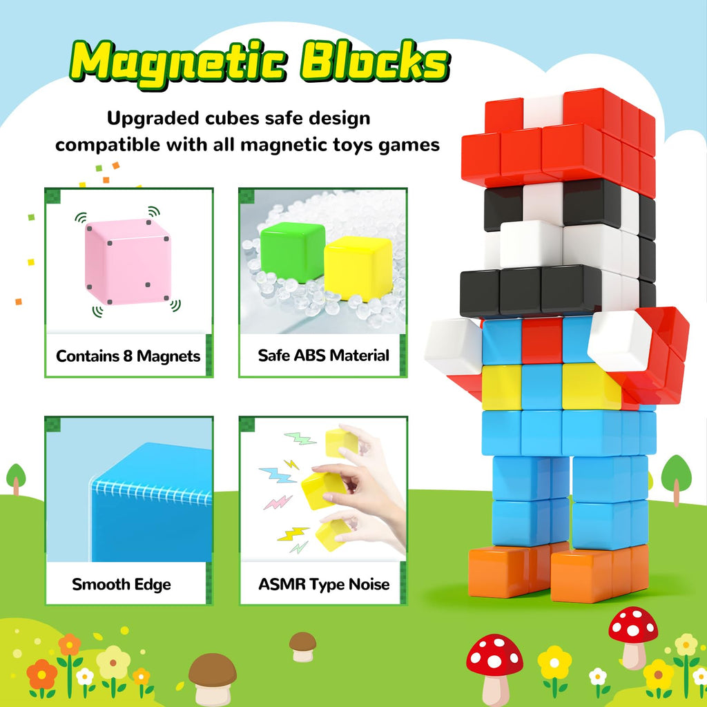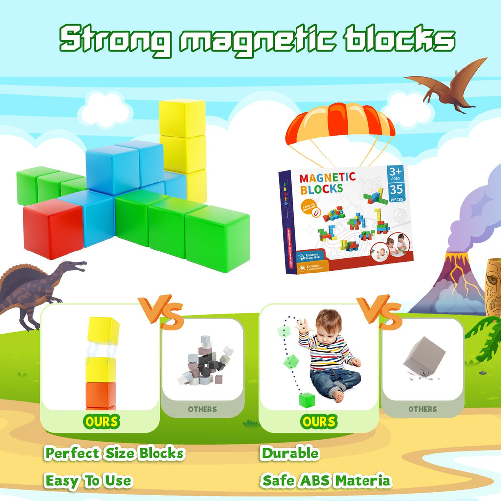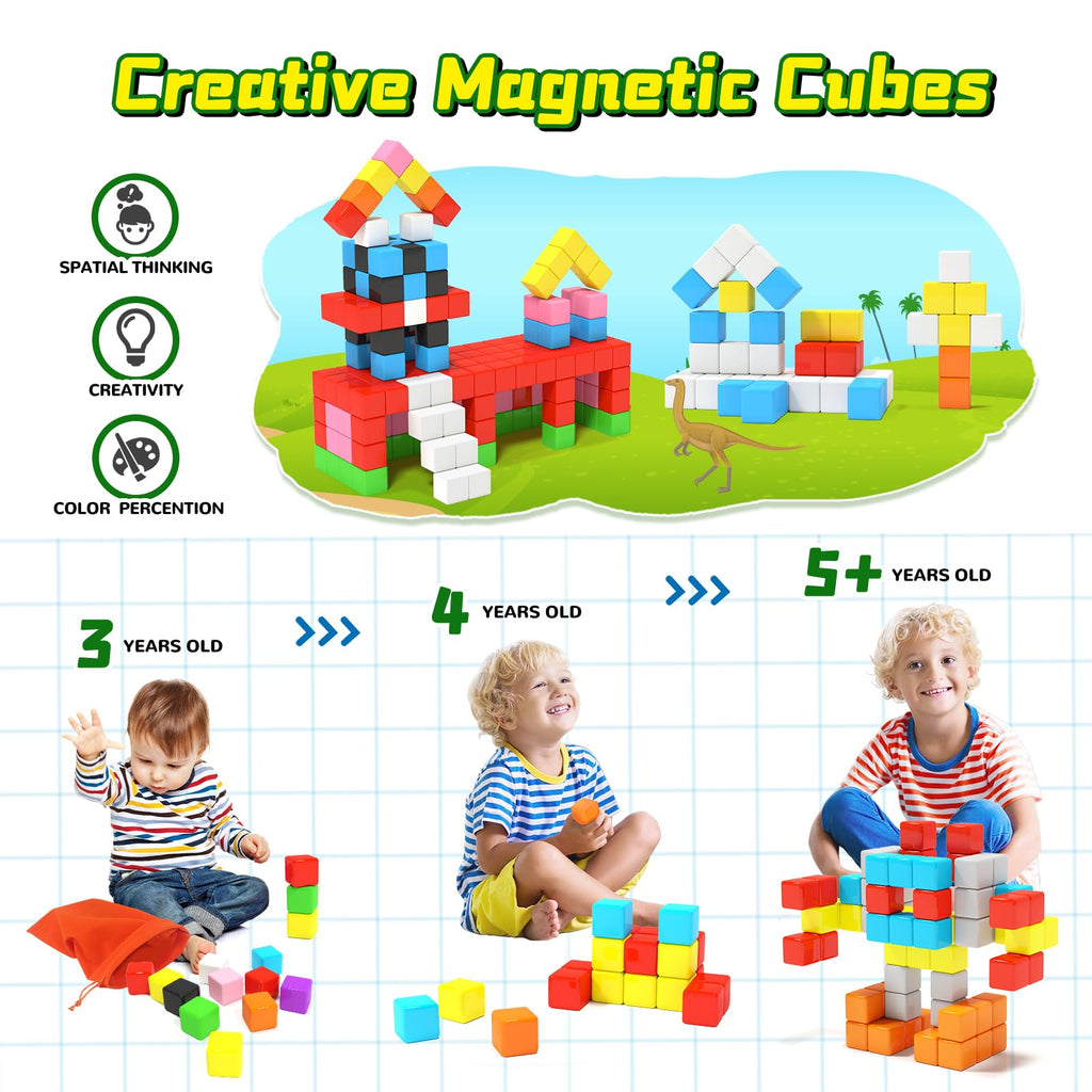 - 【ألعاب STEM رائعة】لا يزال الوقت مبكرًا لتطوير قدرات الأطفال. سيكتسب طفلك العبقري حسًا قويًا بإدراك الألوان، والتفكير المكاني ثلاثي الأبعاد، وحساب الأرقام، وغيرها من المهارات عند تجميع مكعبات البناء المغناطيسية لتجسيد الأشكال في الواقع.