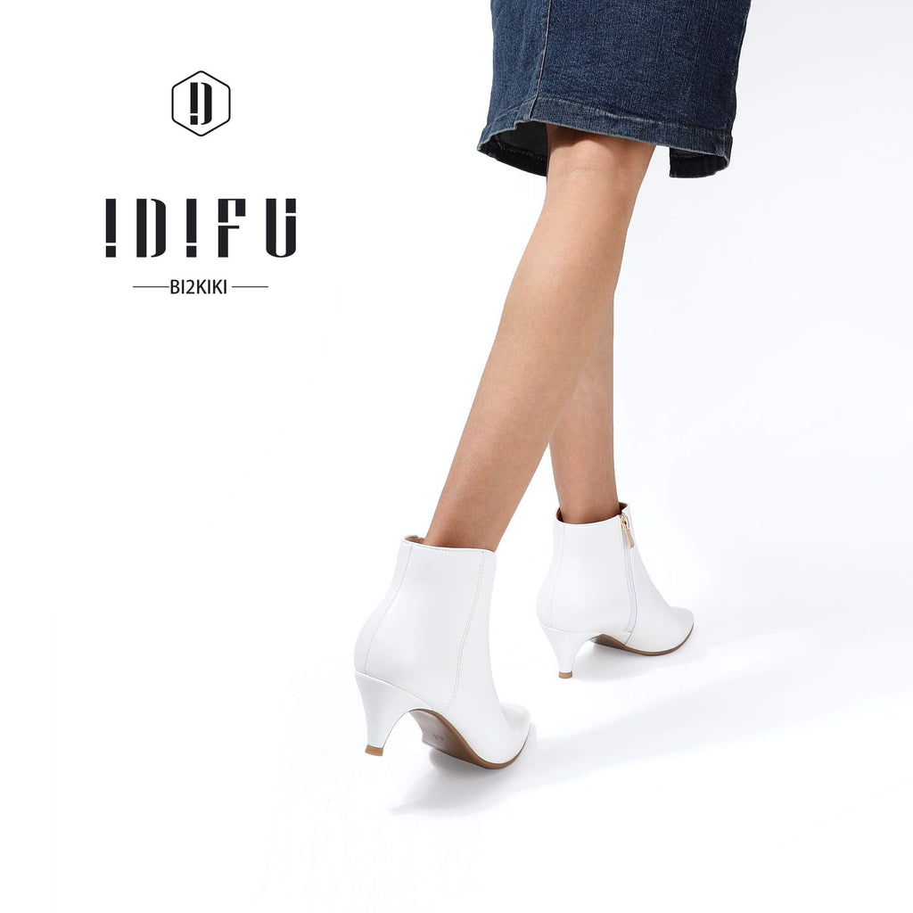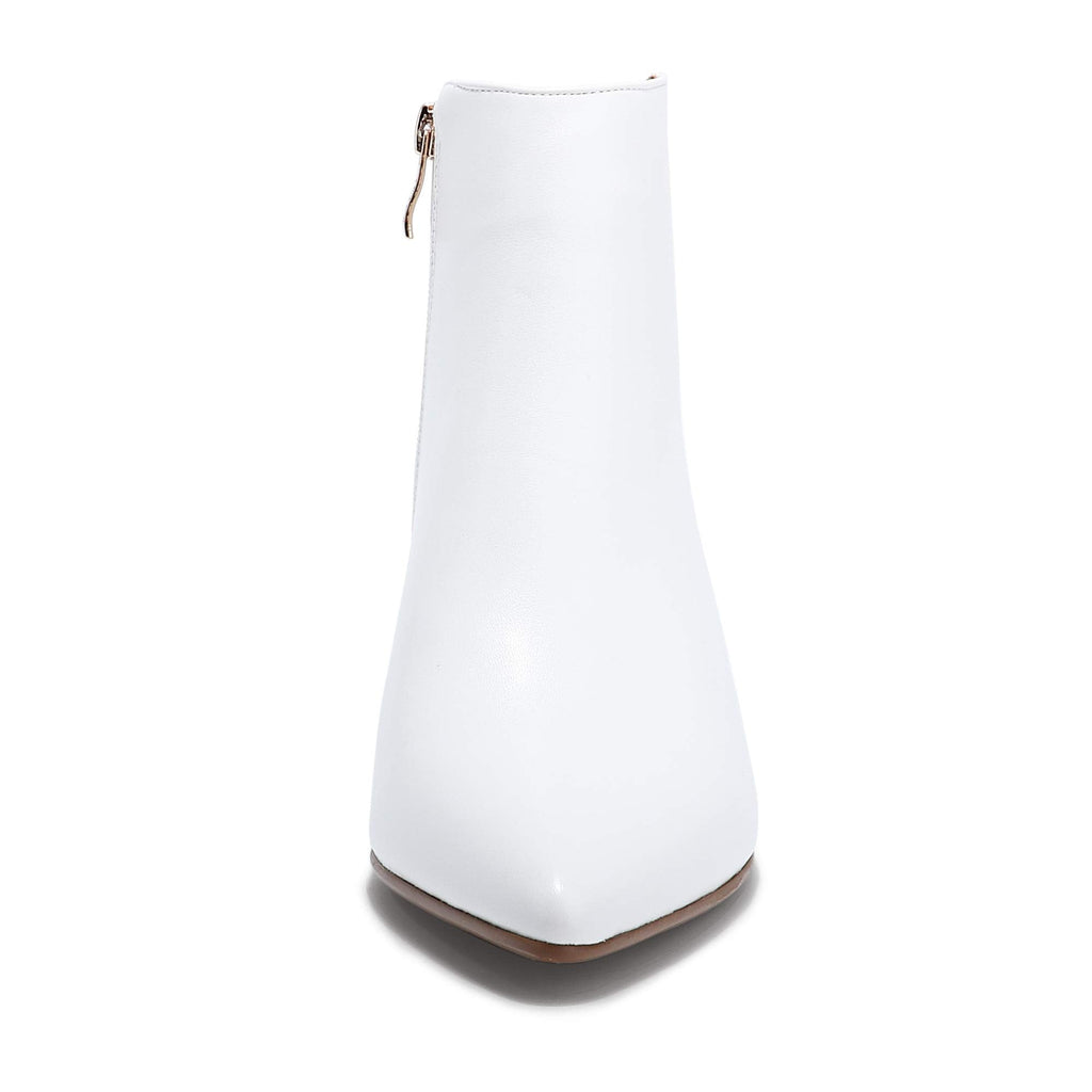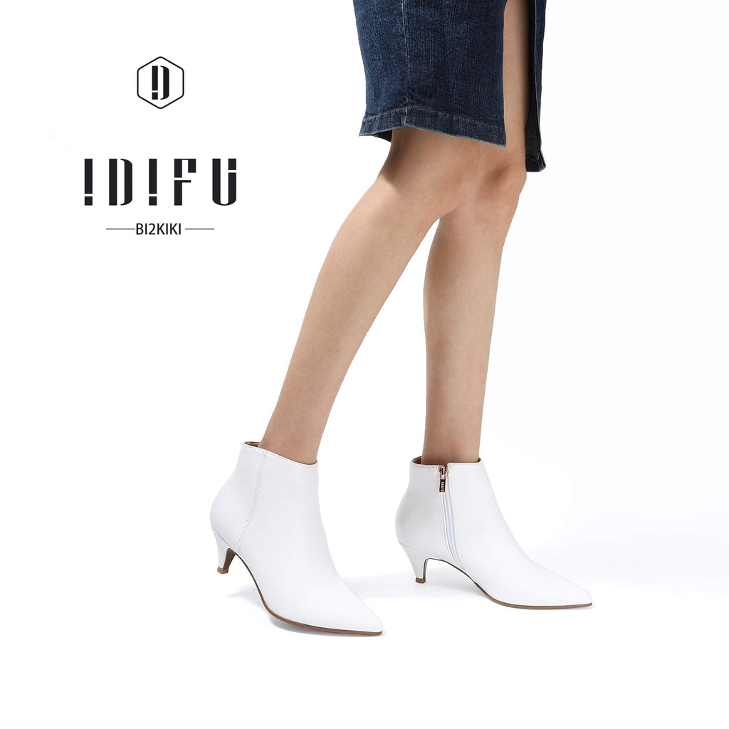المقاس 41: حذاء نسائي قصير بكعب منخفض حتى الكاحل من IDIFU بمقدمة مدببة وأحذية قصيرة أنيقة (جلد صناعي أبيض)