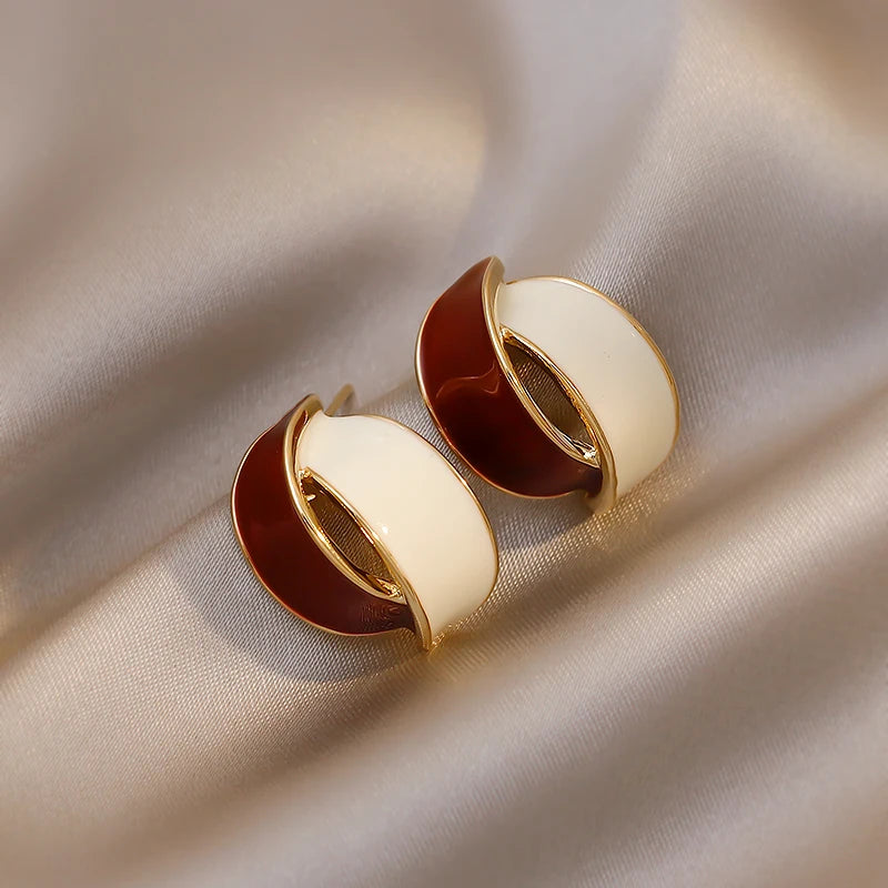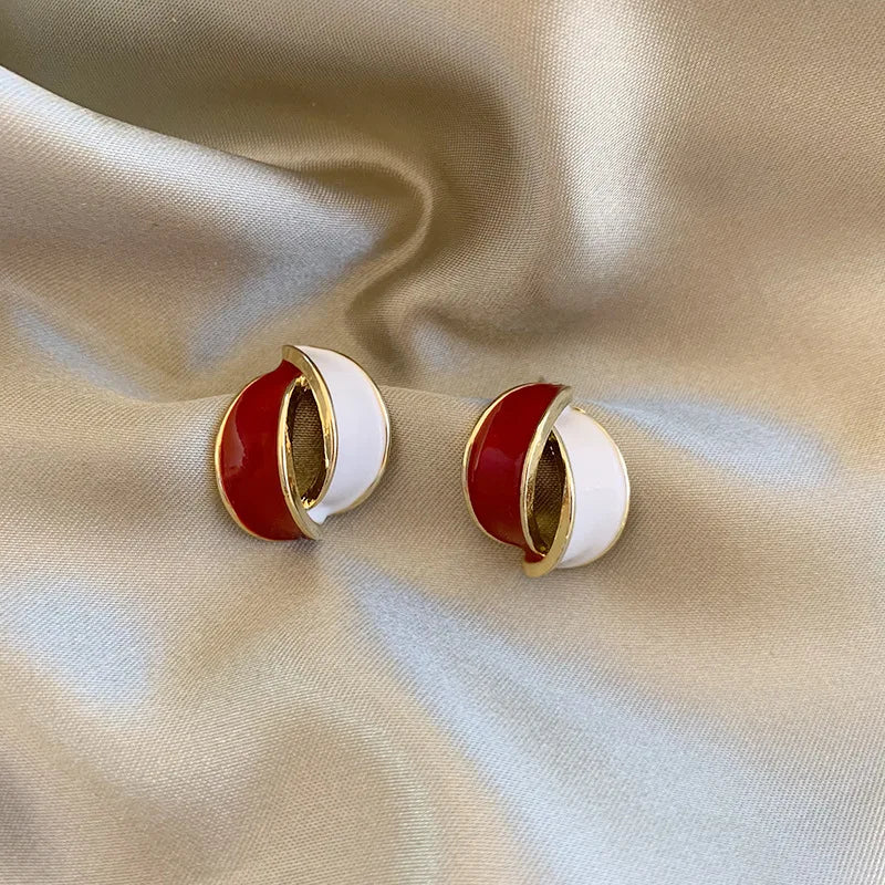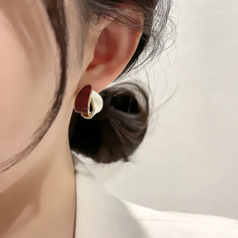 Korean Double Arc Cross Enamel Stud Earring for Women Personality Contrast Color Blue Geometric Earring Jewelry Party Pendientes
