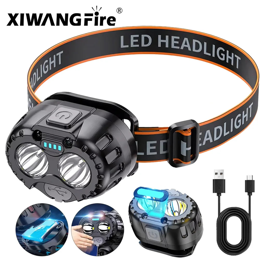 LED Motion Sensor Headlamp USB Rechargeable Headlight Outdoor Waterproof Headlight Camping Tools Fishing Head flashlight Lantern