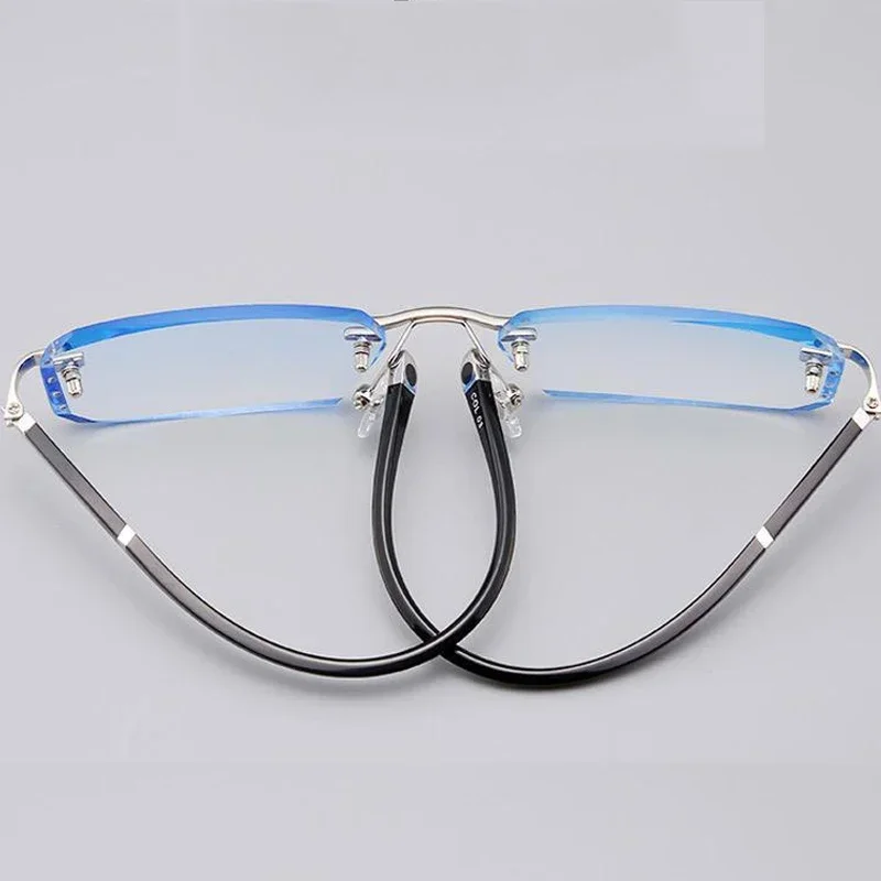 Luxury Diamond Cutting Photochromic Reading Glasses Men Business Rimless Eyeglasses Women Color Changing Presbyopia Eyewear