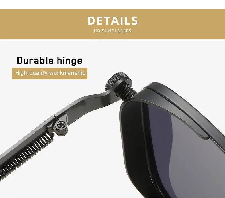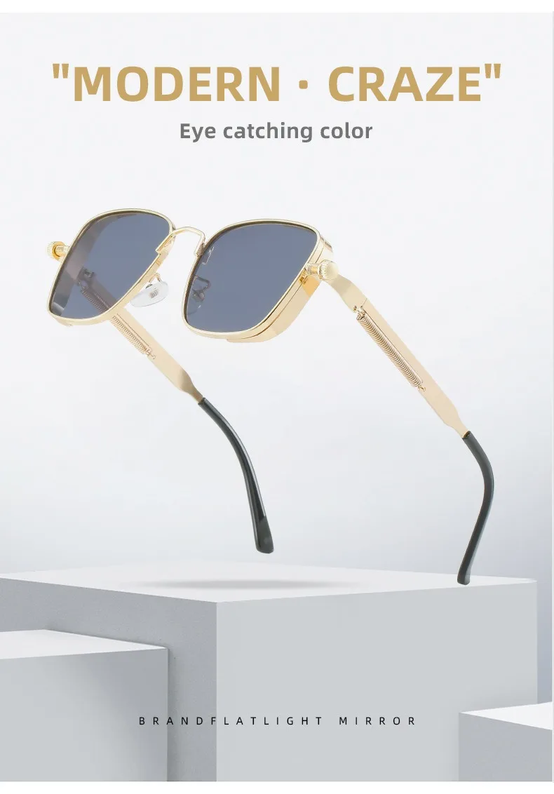 Men Driving Sunglasses Vintage Steam Punk Square Sunglasses Metal Frame with Spring Hinges Women Eyepiece Trendy Driver Glasses