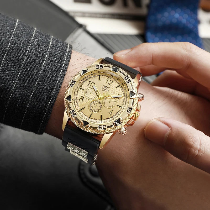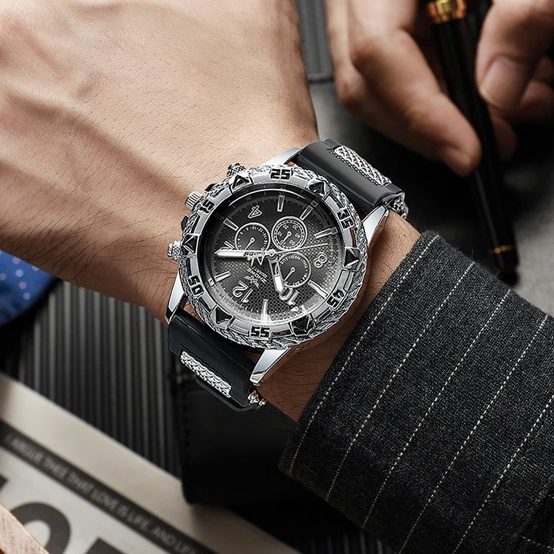 Men's Fashion casual Silicone Band Quartz Wrist Watch(Box Not Included )
