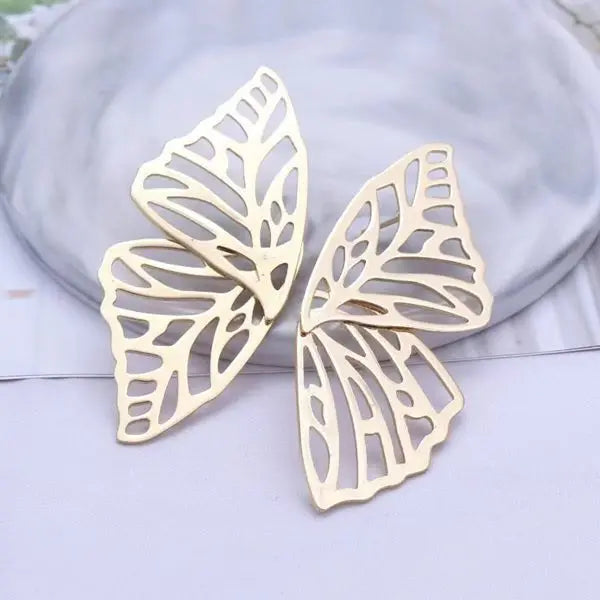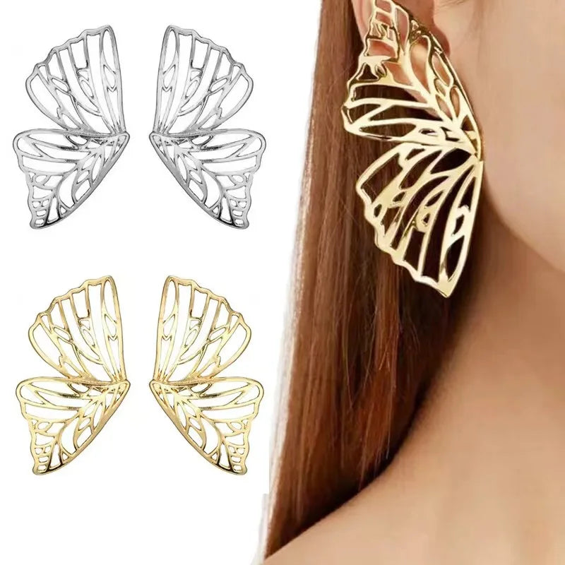 Metal Hollow Butterfly Stud Earrings Personality Wing Earrings Fashion Accessories