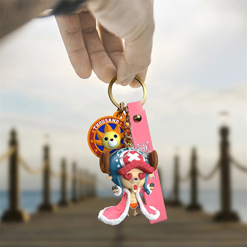 Original One Piece Luffy Tony Tony Chopper Cartoon Figure Toys PVC Keychain Kawaii Anime Student Bag Pendant Model Dolls Gifts