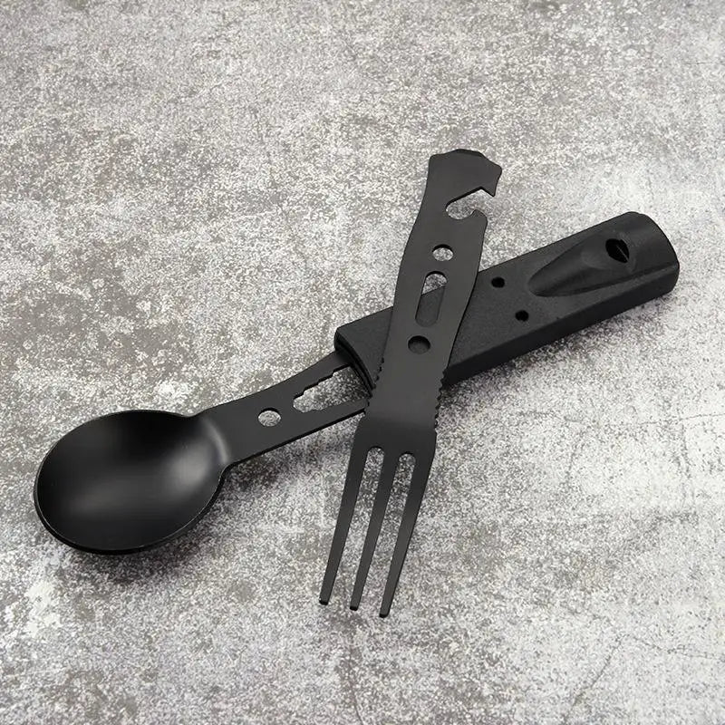 1. All-in-one: This outdoor suit with camping tableware, including whistling spoons and forks. It can not only deal with food processing and catering needs in various outdoor activities, but also can be used for help and self-protection when necessary.