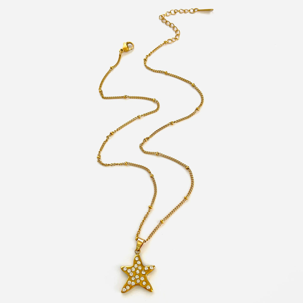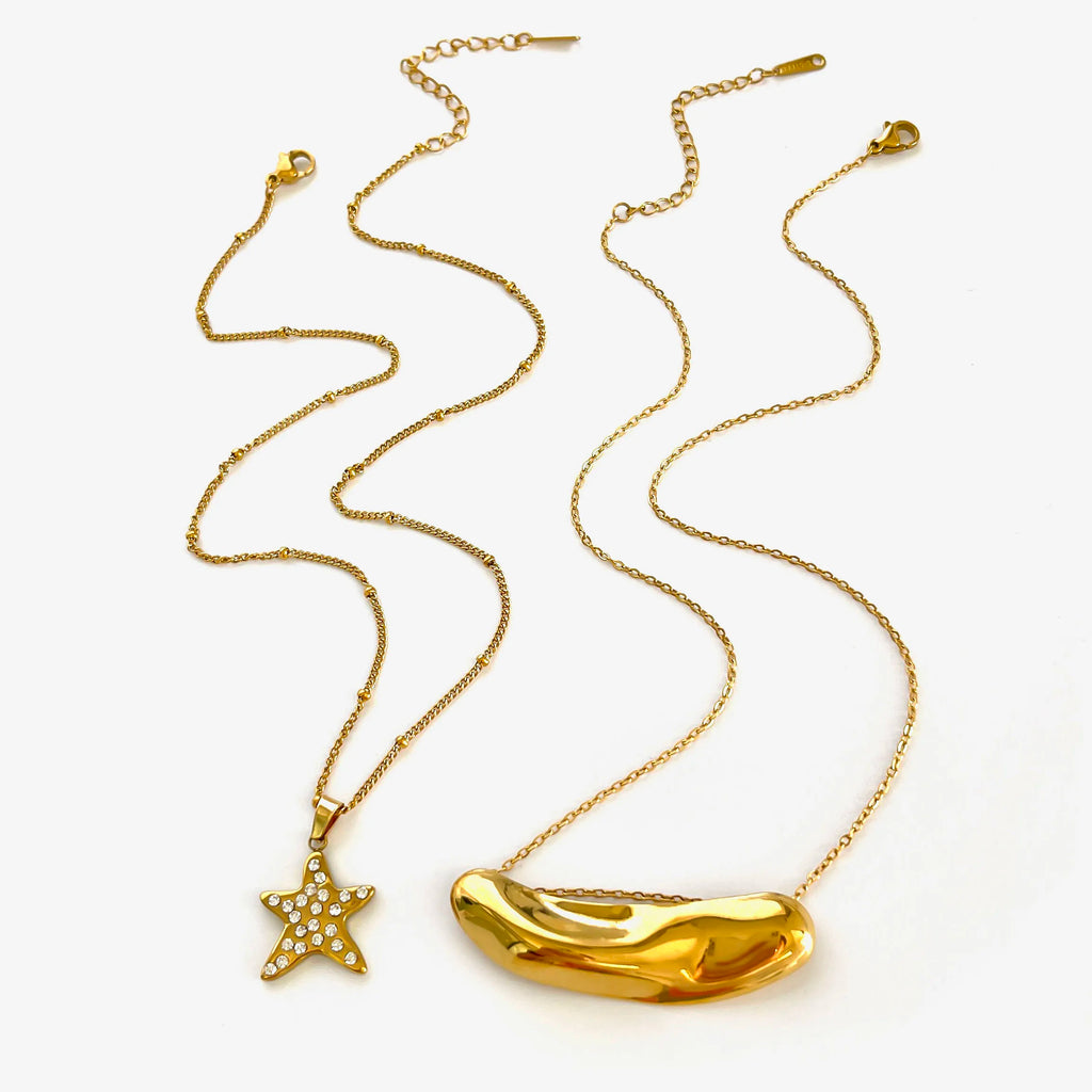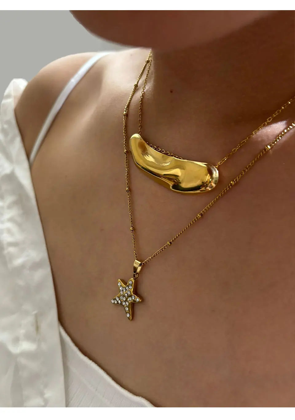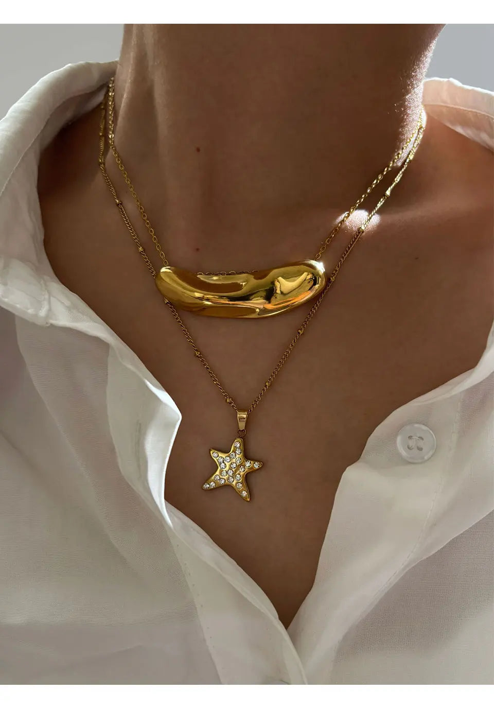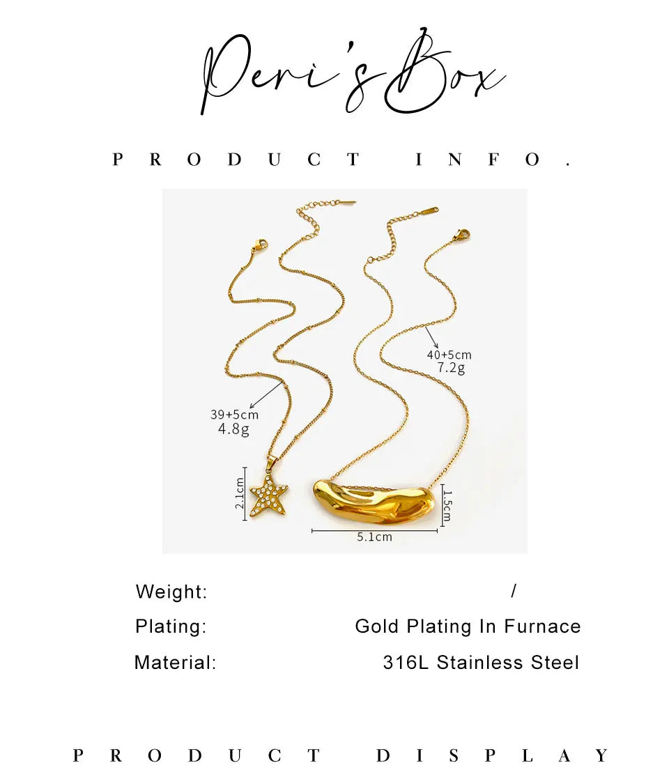 Peri'sbox Fashion 18K Gold Plated Rhinestone Pentagram Irregular Metal Hammered Surface Pendant Necklaces for Women Free Tarnish