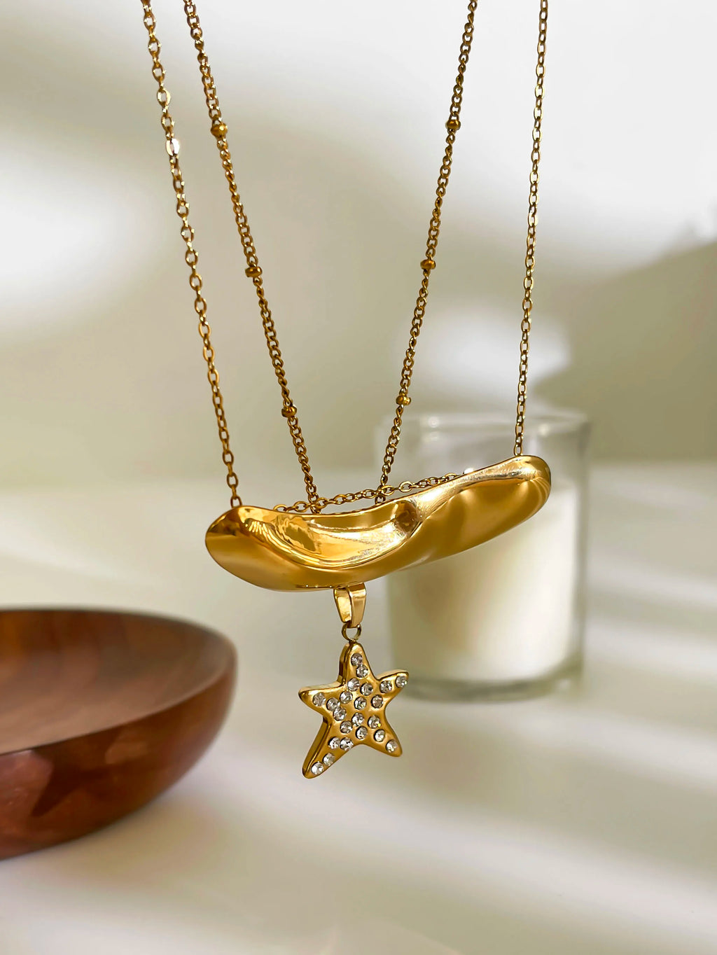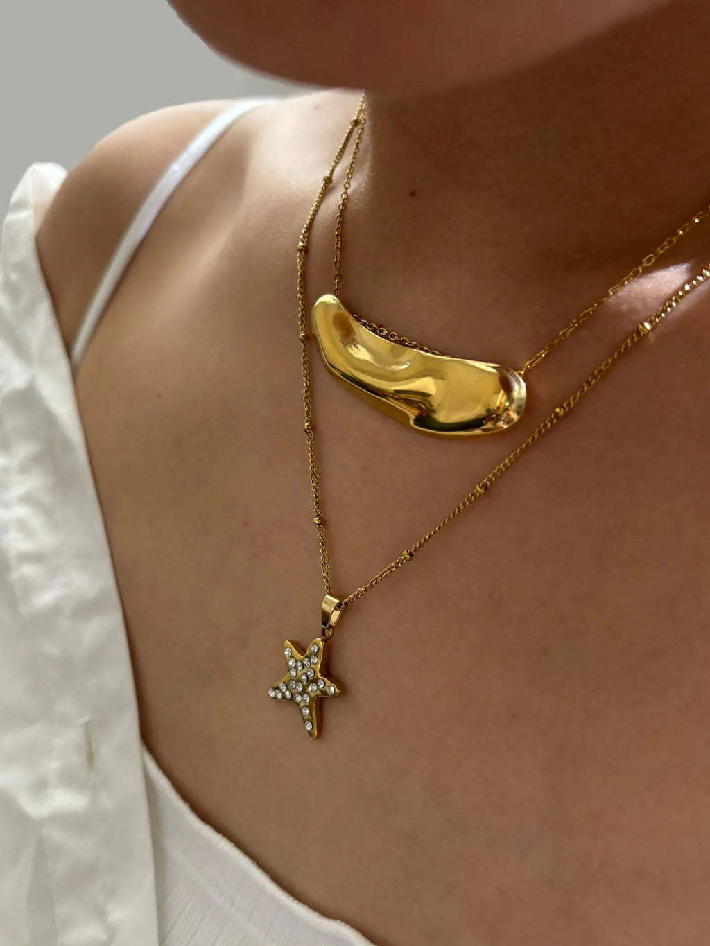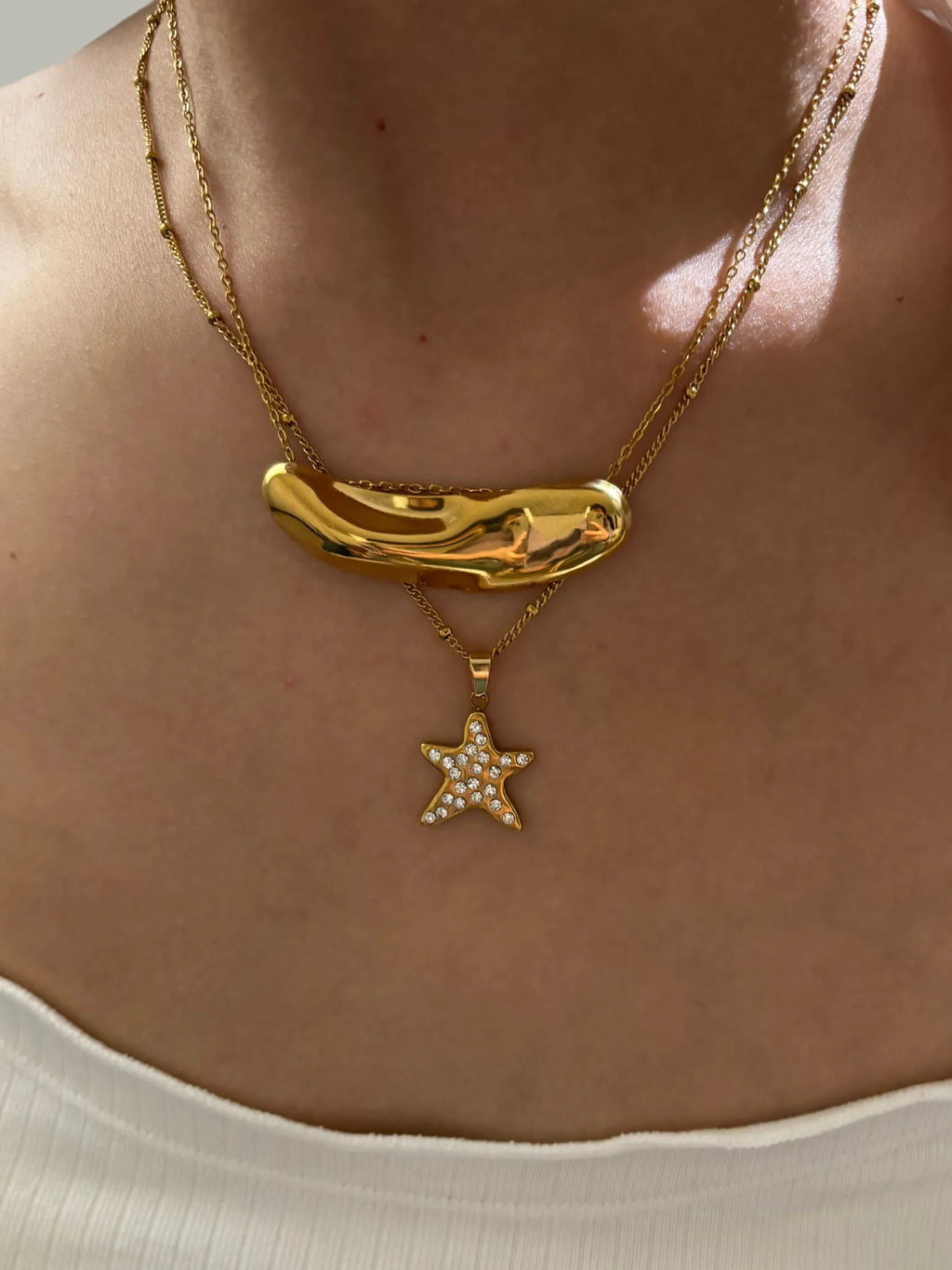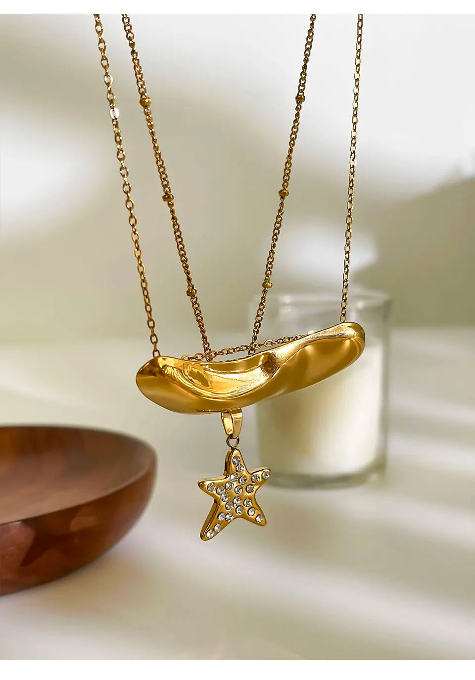 Peri'sbox Fashion 18K Gold Plated Rhinestone Pentagram Irregular Metal Hammered Surface Pendant Necklaces for Women Free Tarnish