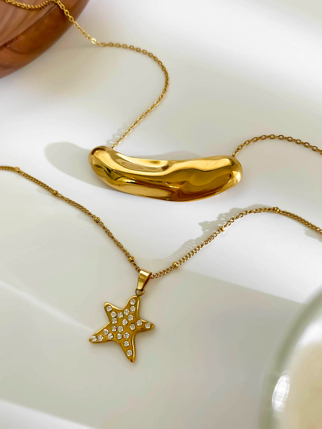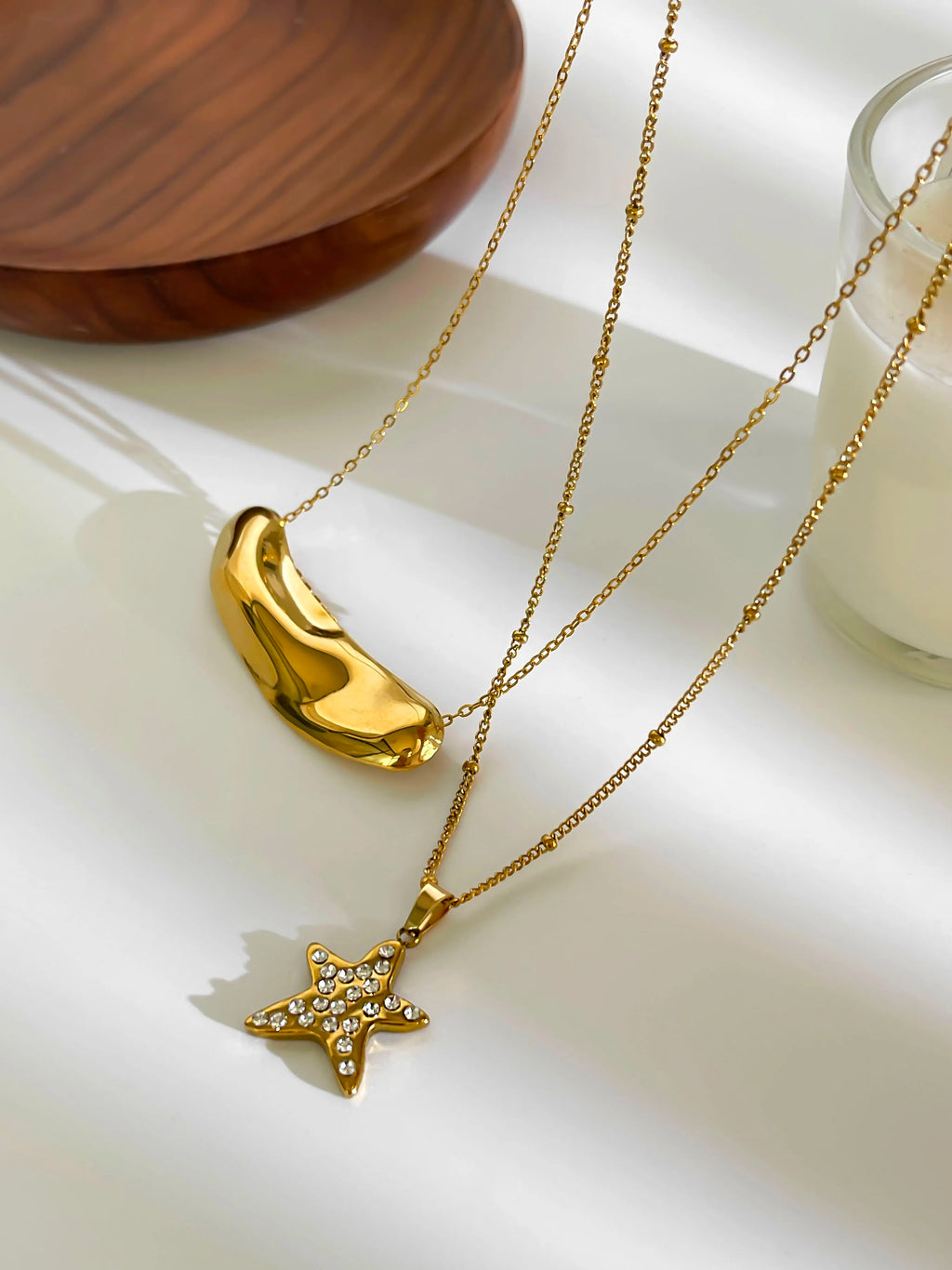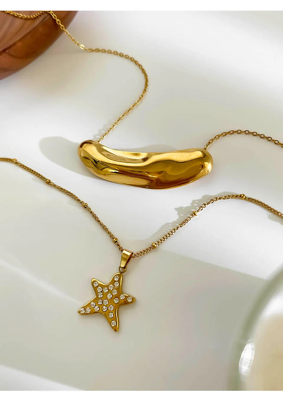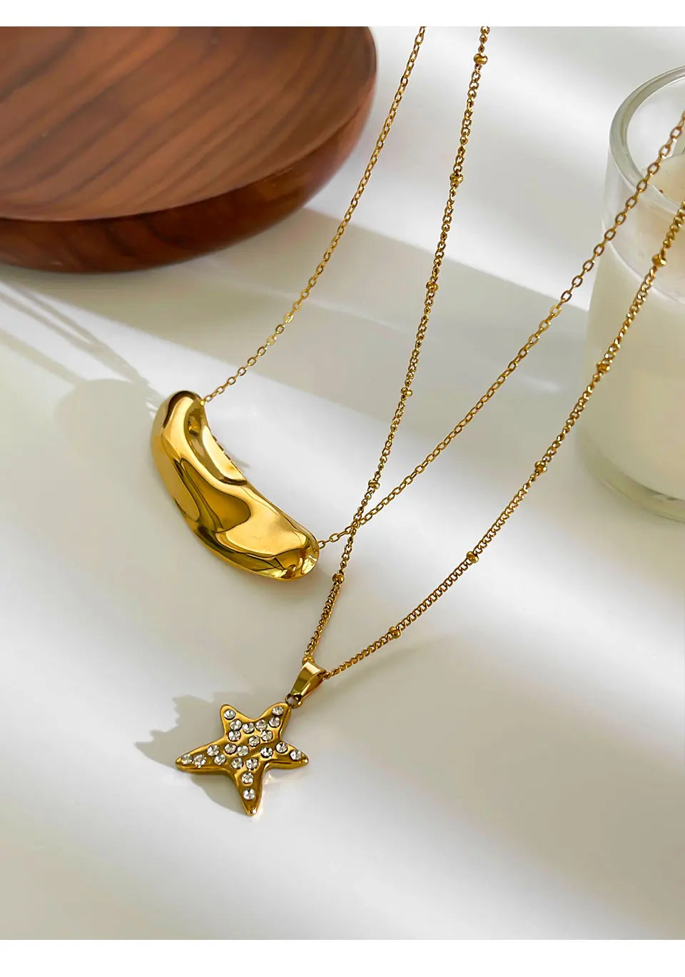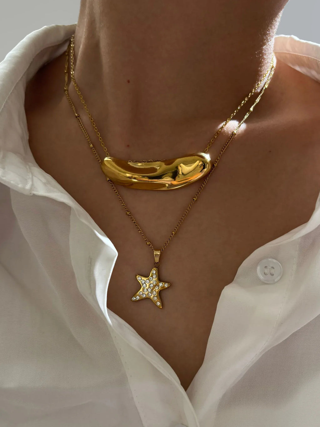 Peri'sbox Fashion 18K Gold Plated Rhinestone Pentagram Irregular Metal Hammered Surface Pendant Necklaces for Women Free Tarnish