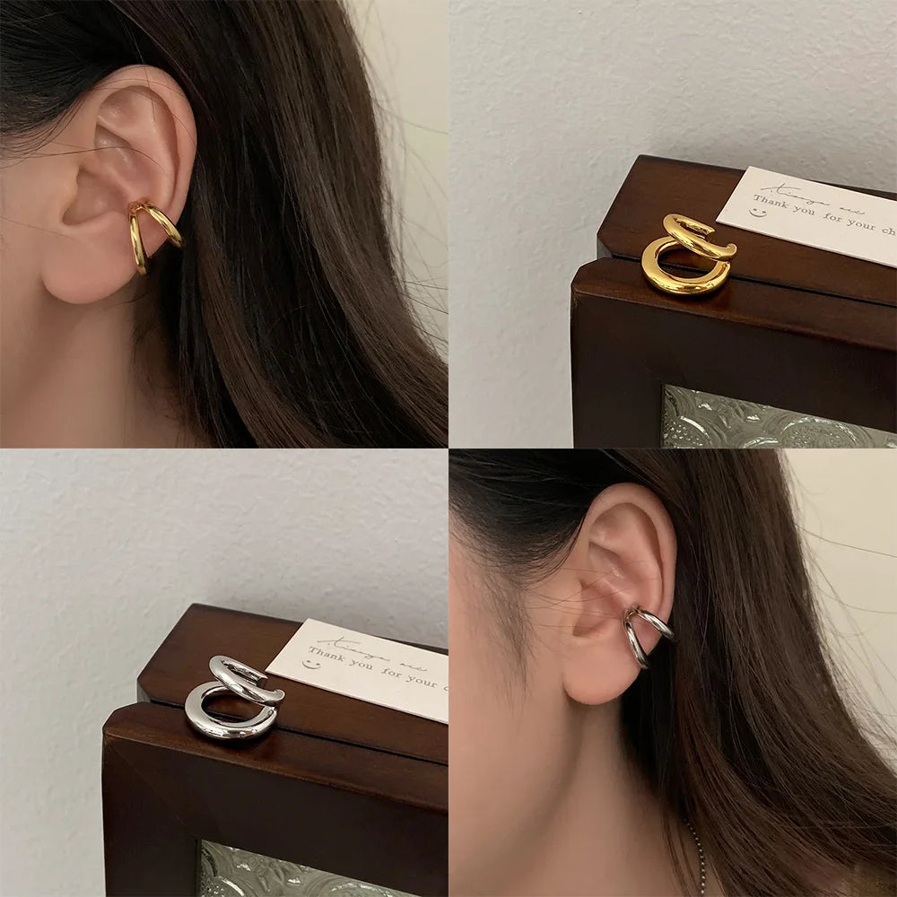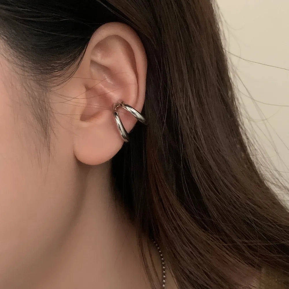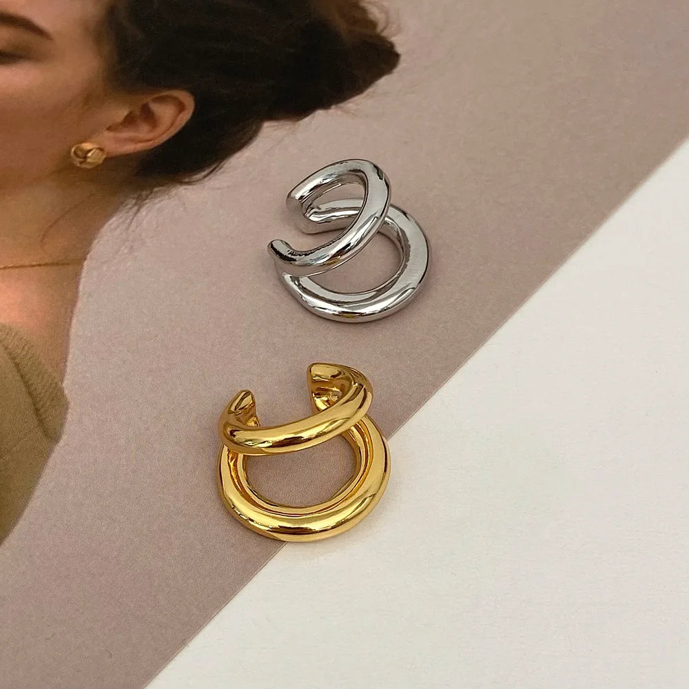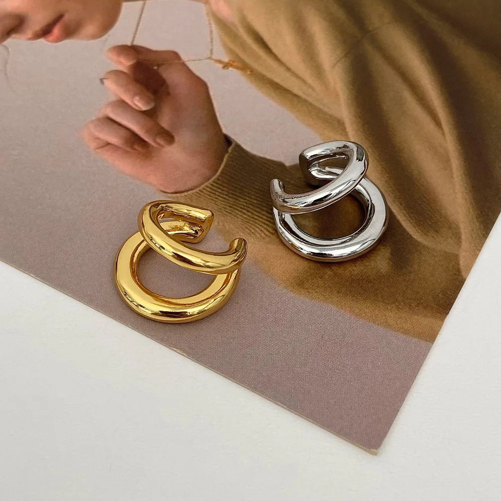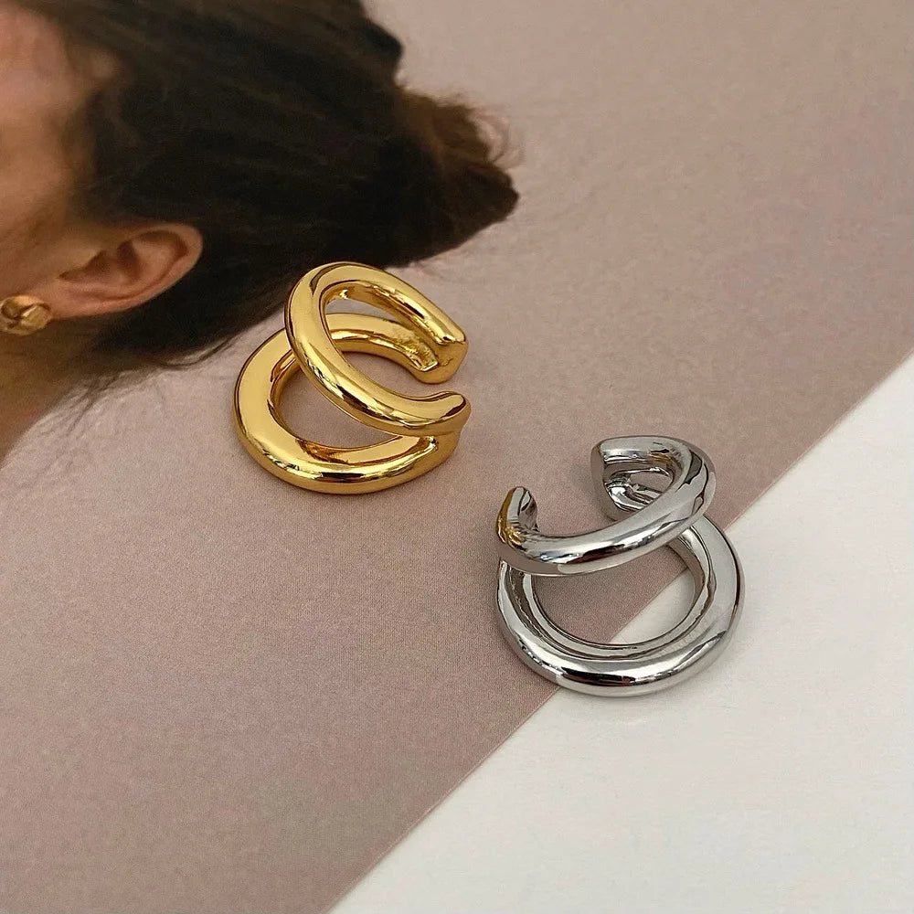 PONYKISS 925 Sterling Silver Double Layered Round Clip Earrings for Women Trendy Fine Jewelry Minimalist No Ear Hole Accessories