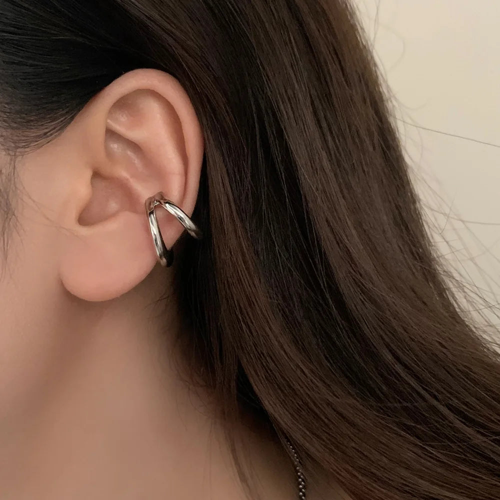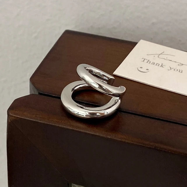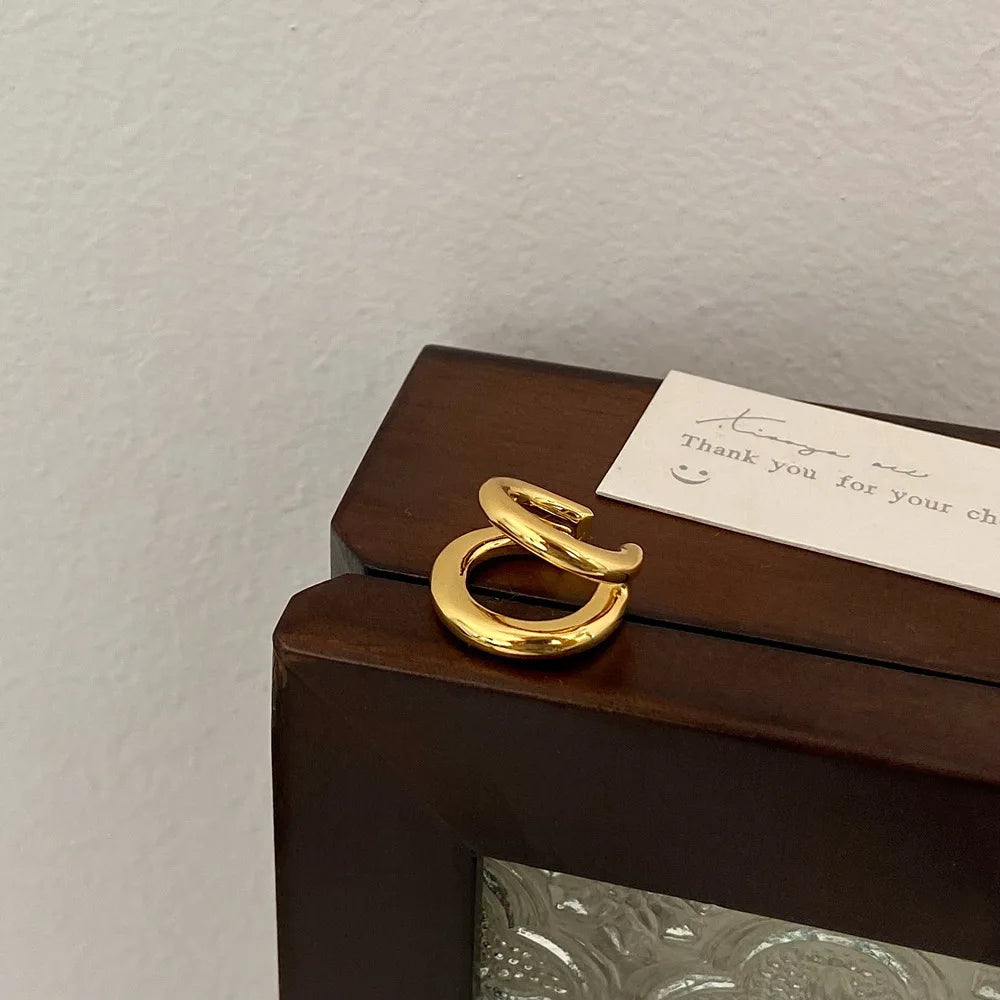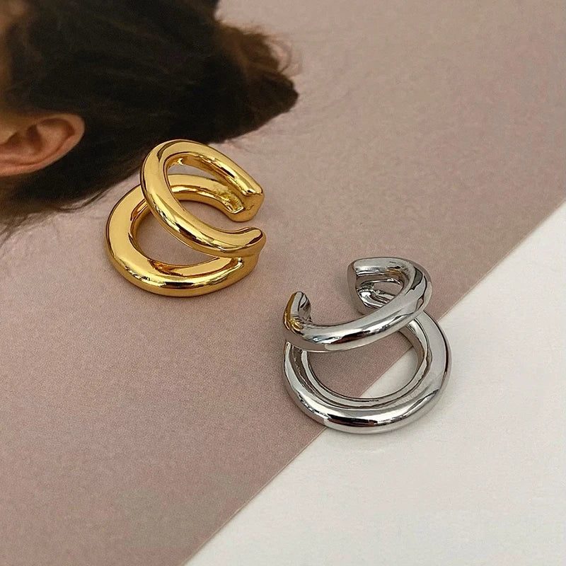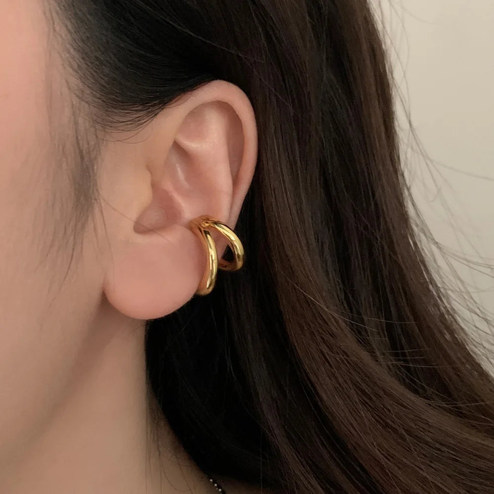 PONYKISS 925 Sterling Silver Double Layered Round Clip Earrings for Women Trendy Fine Jewelry Minimalist No Ear Hole Accessories