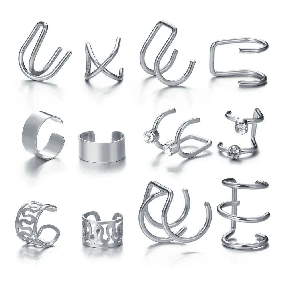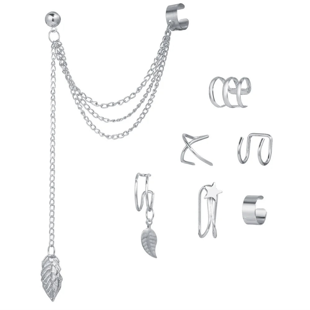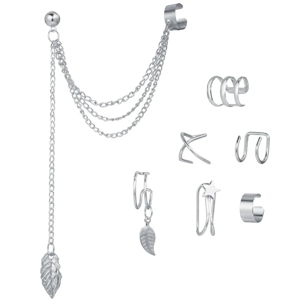 Silver Color Leaves Clip Earrings for Women Men Creative Simple C Ear Cuff Non-Piercing Ear Ear Clip Set Trend Jewelry Gift