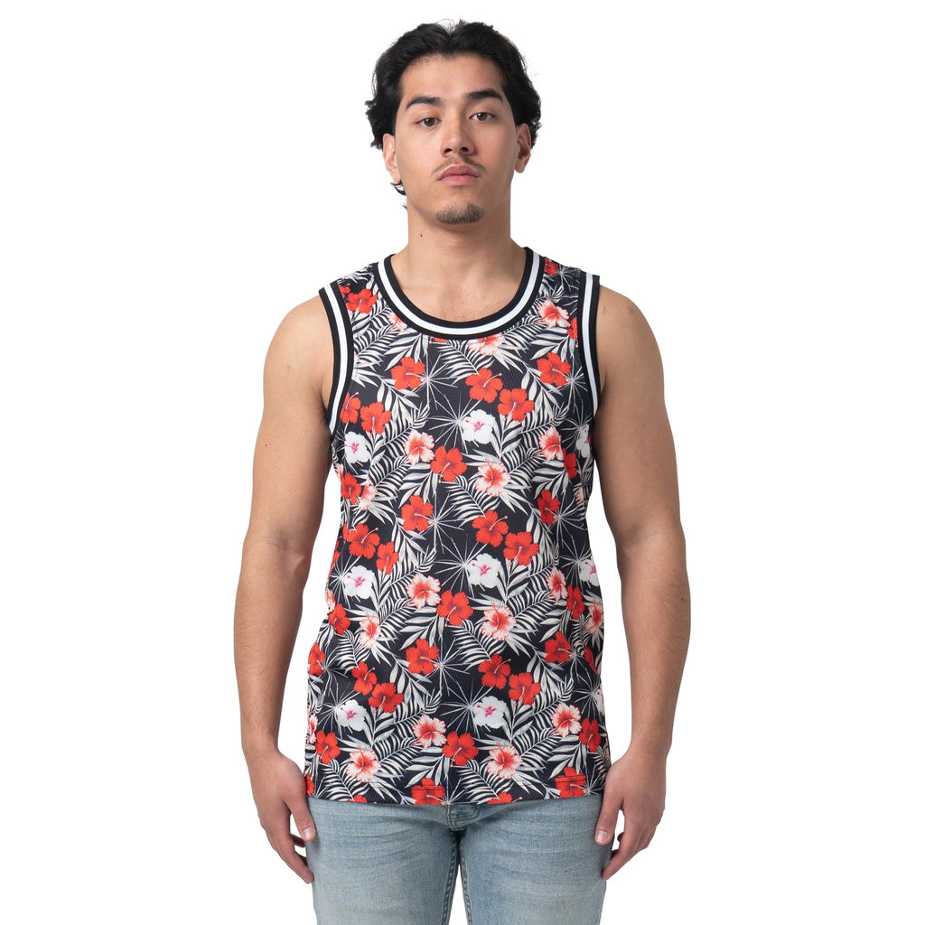 المقاس: M - قميص كرة السلة للرجال من WeSC مطبوع عليه زهور الكركديه بالكامل