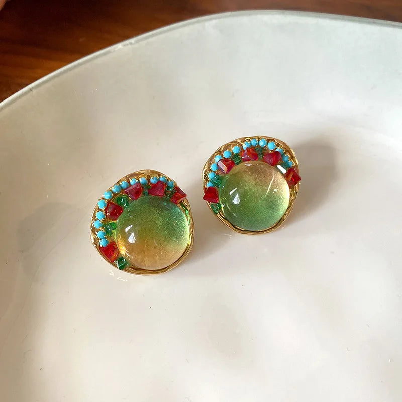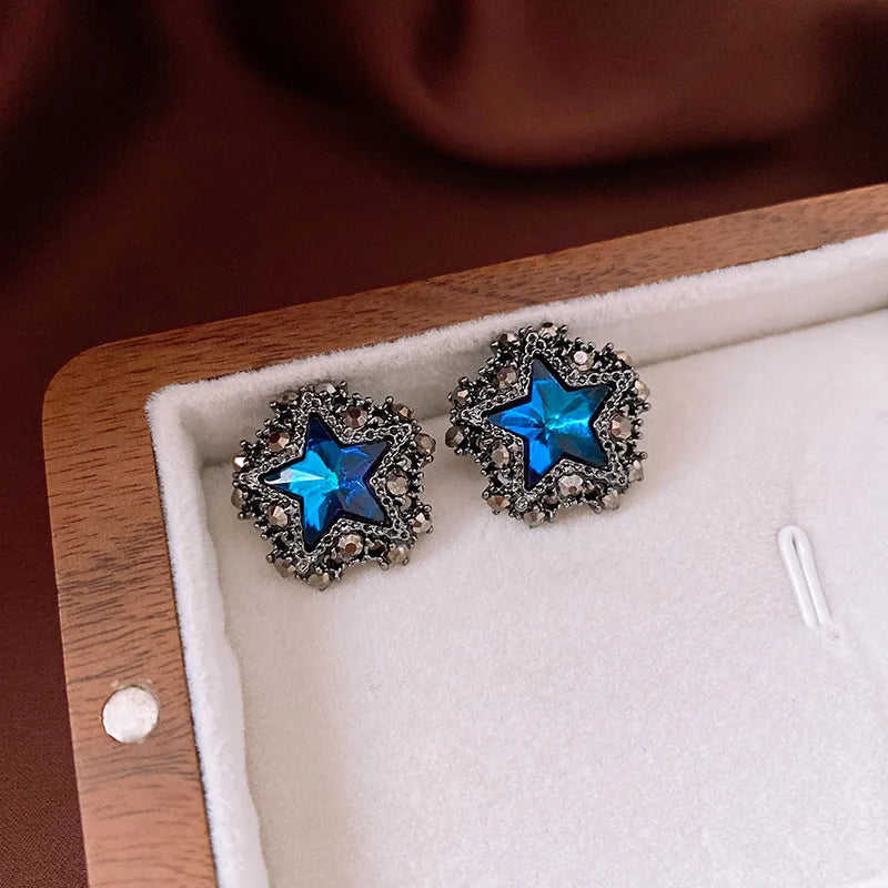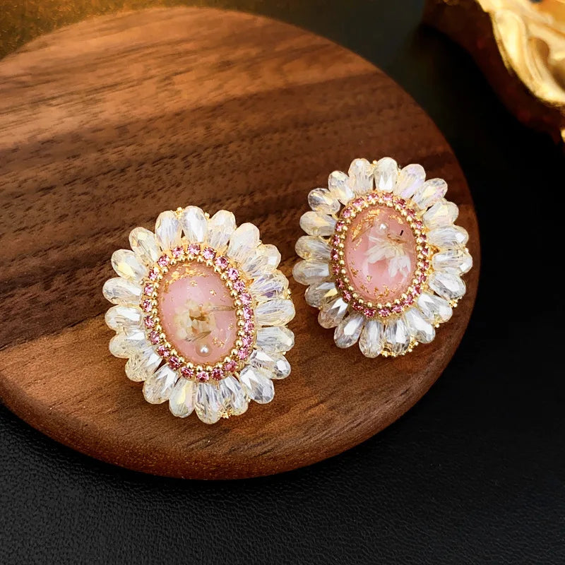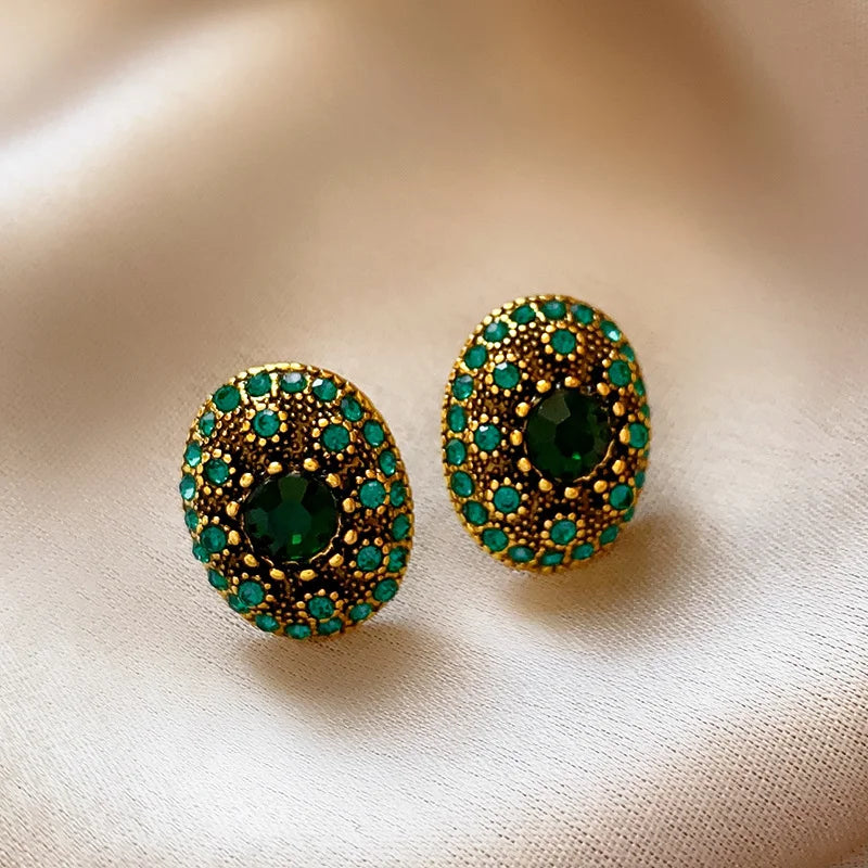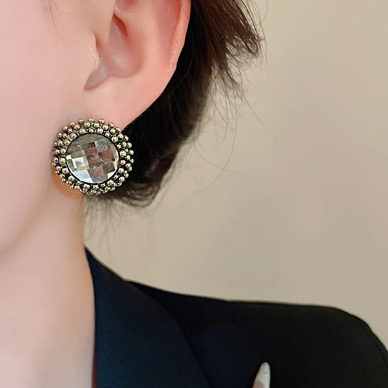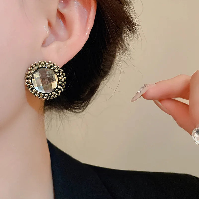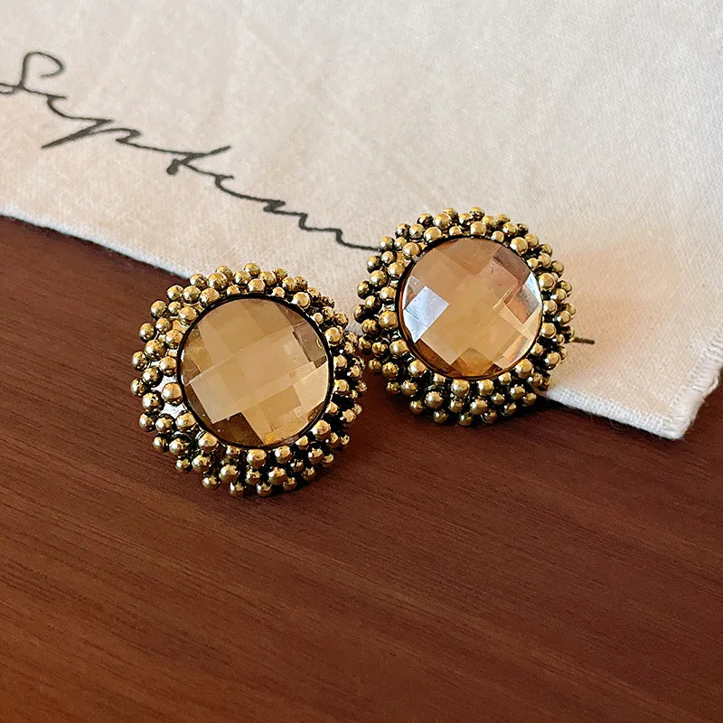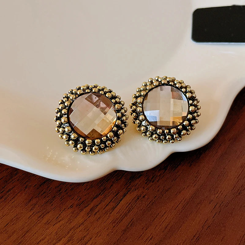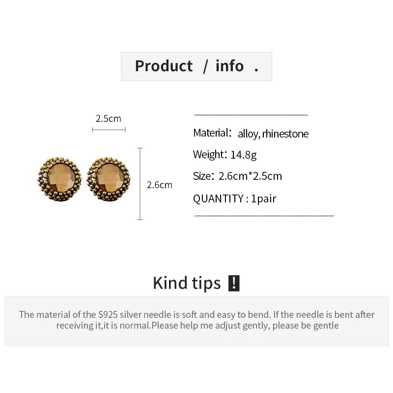 Vintage Bronze Rhinestone Stud Earring Simple Fashion Round Flower Earrings for Women Wedding Jewelry Personality Gifts