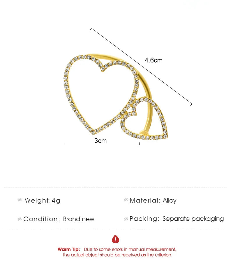 Women New Love Without Ear Holes Female Simple Hollow Full Rhinestone Ear Hanging One-piece Ear Clip E7175