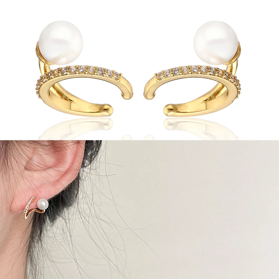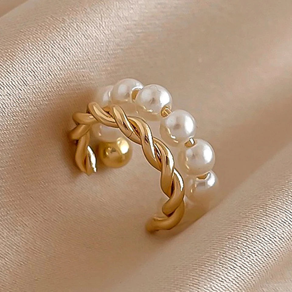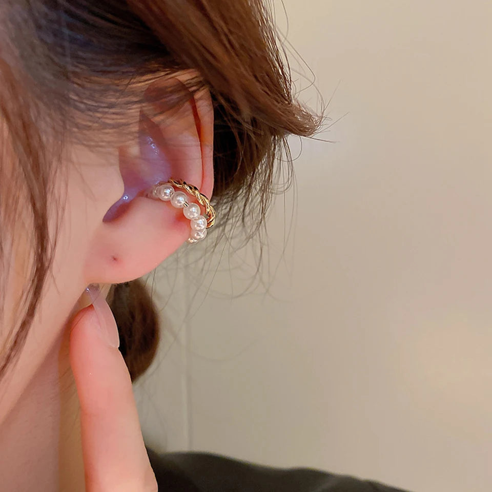 Yupsk Elegant Imitation Pearl Ear Bone Clip Fashion Twist Metal Geometric Earrings For Women Minimalist Ear Accessories