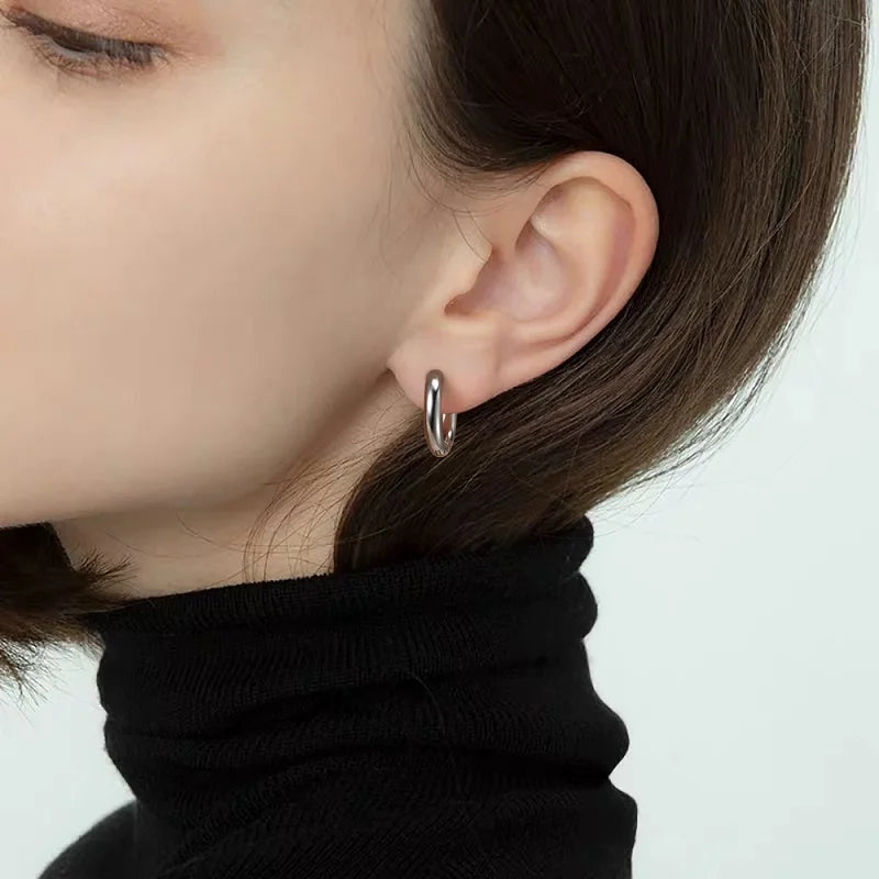 1 Pair Stainless Steel Ear Buckle Earrings For Women Steel-Color Fadeless Hypoallergenic Hoop Earring Jewelry