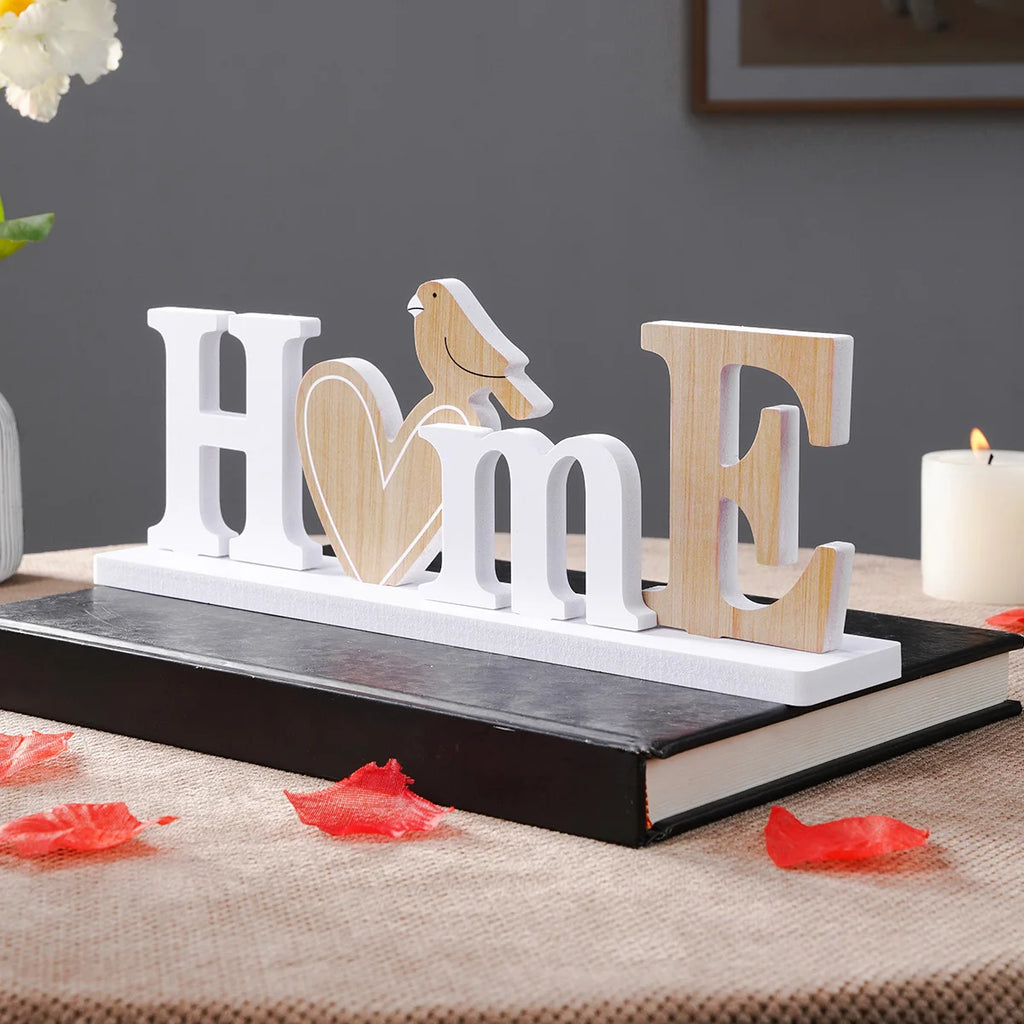 1PC, a simple heart-shaped bird HOME letter-shaped decorative item, an indoor desktop decorative letter board