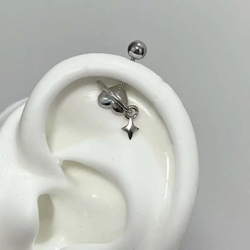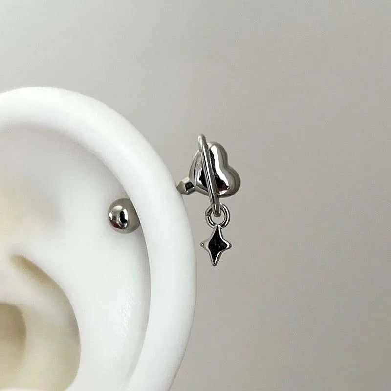 1Pc Stainless Steel Heart Planet Ear Bone Nail for Women Punk Silver Color Love Four Pointed Star Earrings Y2K Jewelry Gifts