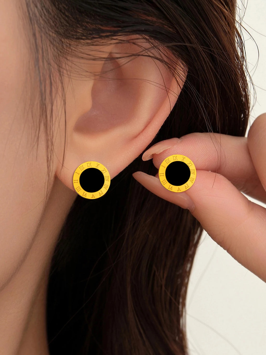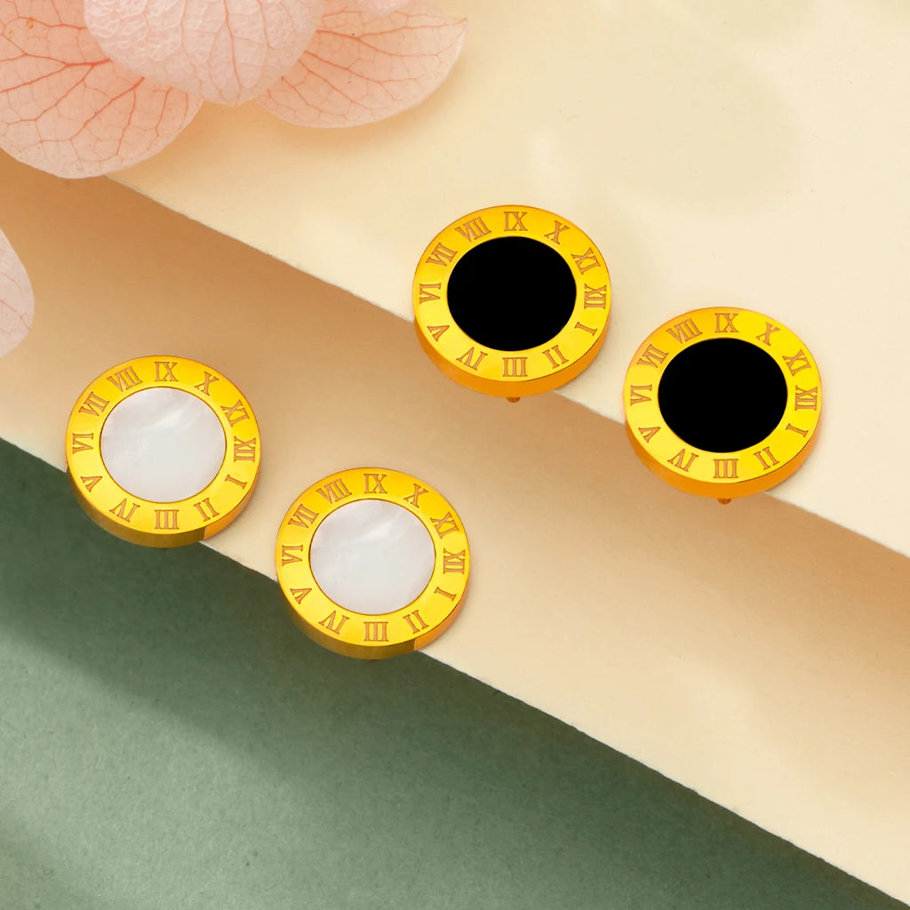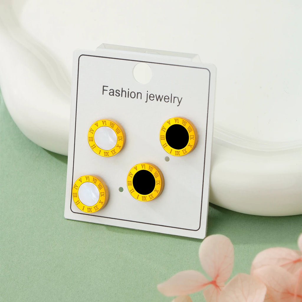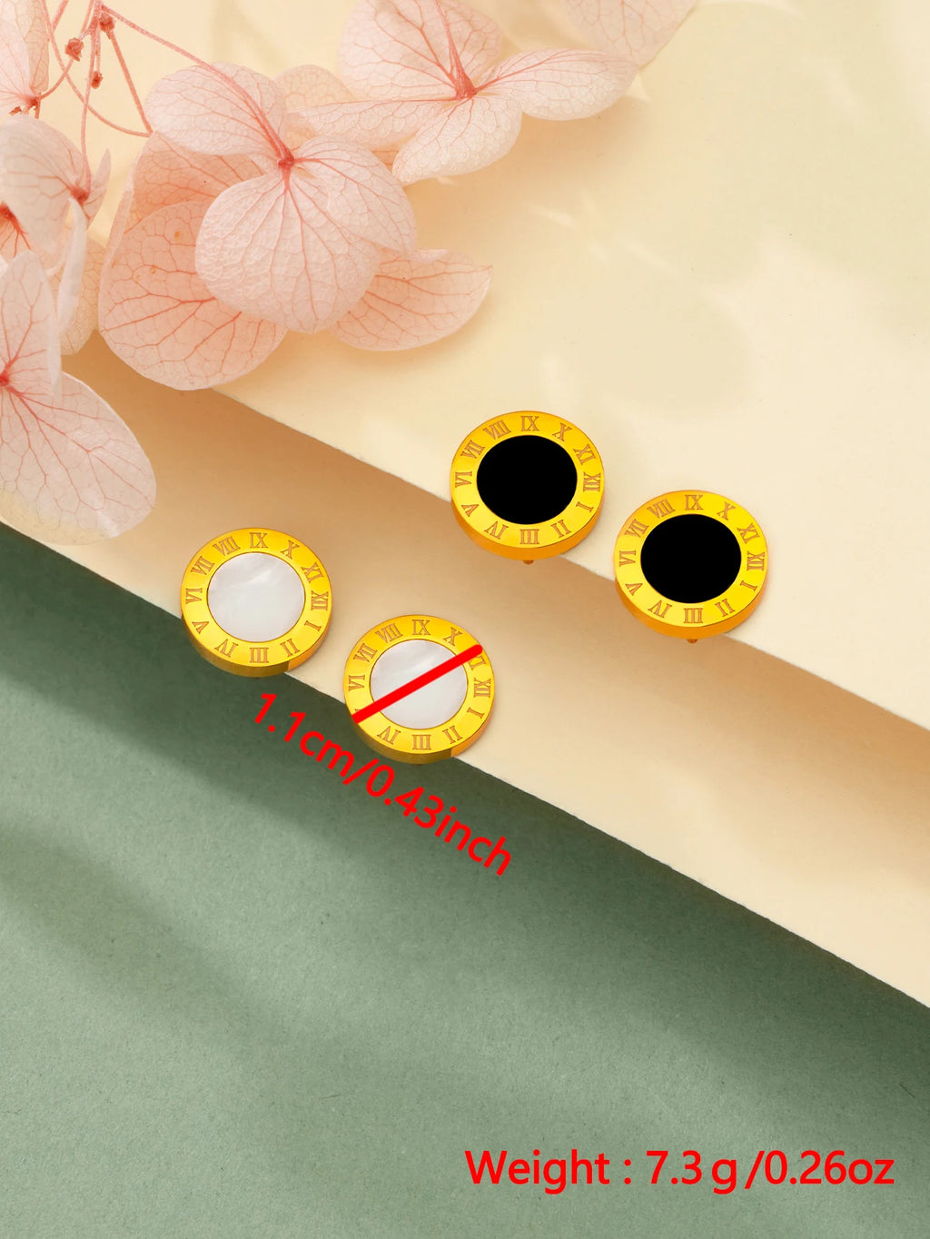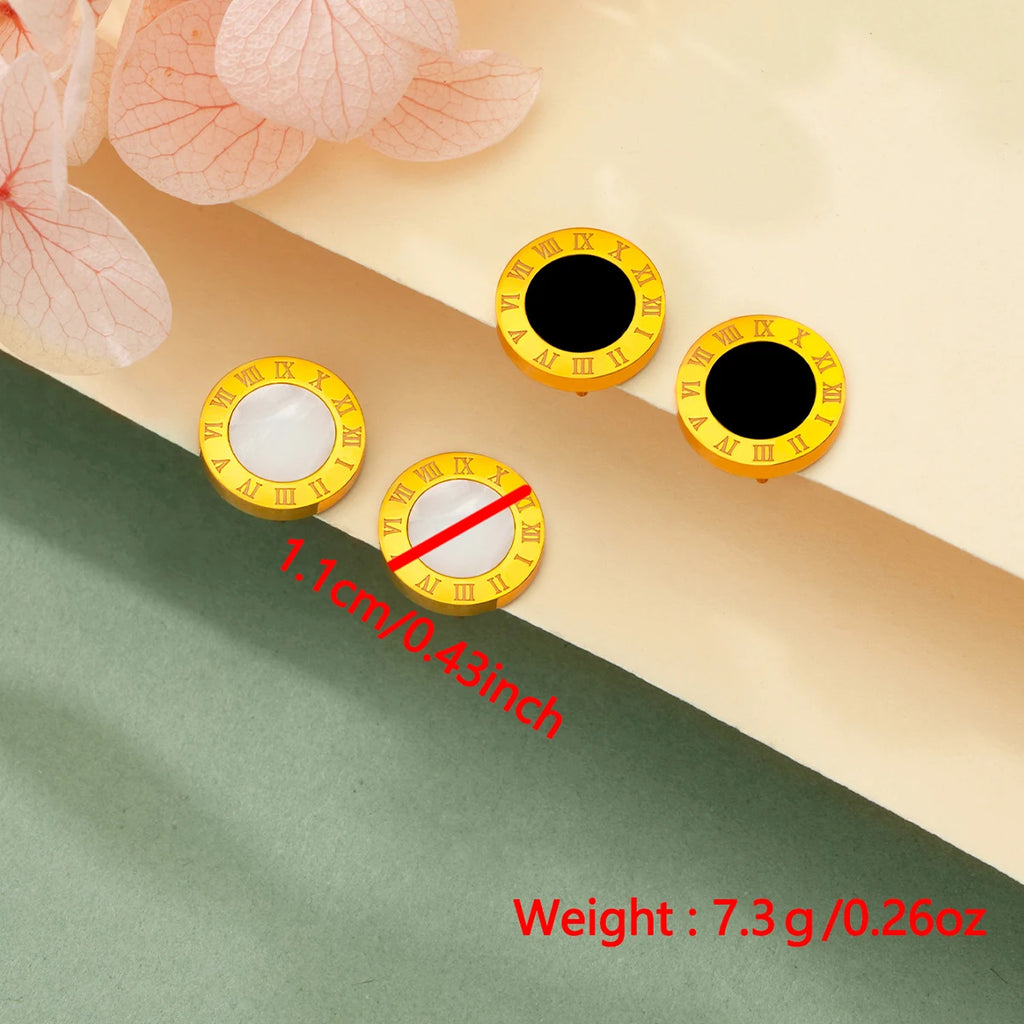 2pcs Non Fading Fashion Roman Numeral Round Earring European and American High-end Men Women Charm Stainless Steel Stud Earrings